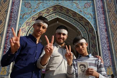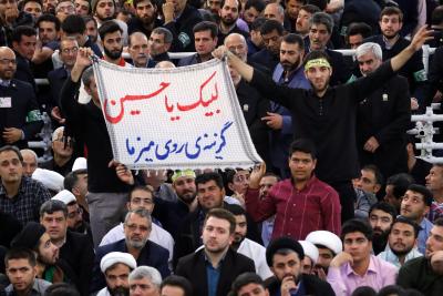 اقامه نماز بر پیکر شهید سپهبد قاسم سلیمانی و یاران مجاهد او