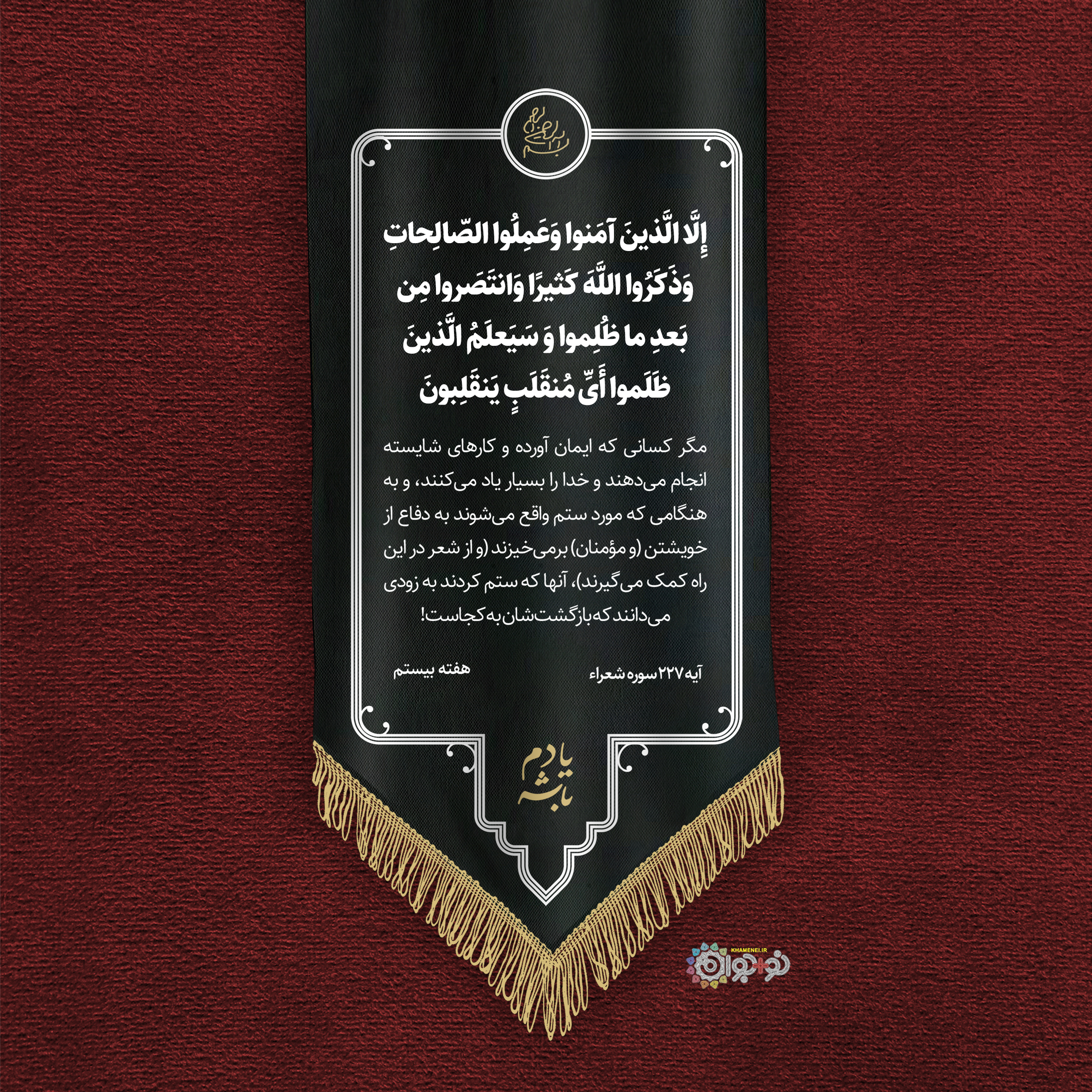 مگر کسانی که ایمان آورده و کارهای شایسته انجام میدهند و خدا را بسیار یاد میکنند، و به هنگامیکه مورد ستم واقع میشوند به دفاع از خویشتن (و مؤمنان) برمیخیزند (و از شعر در این راه کمک میگیرند)؛ آنها که ستم کردند بهزودی میدانند که بازگشتشان به کجاست!