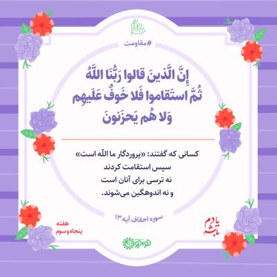 کسانی که گفتند: «پروردگار ما اللّه است» سپس استقامت کردند، نه ترسی برای آنان است و نه اندوهگین میشوند.