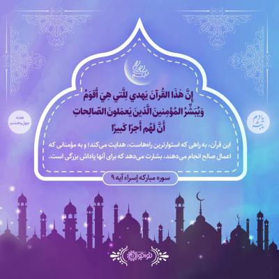 این قرآن، به راهی که استوارترین راههاست، هدایت میکند؛ و به مؤمنانی که اعمال صالح انجام میدهند، بشارت میدهد که برای آنها پاداش بزرگی است.