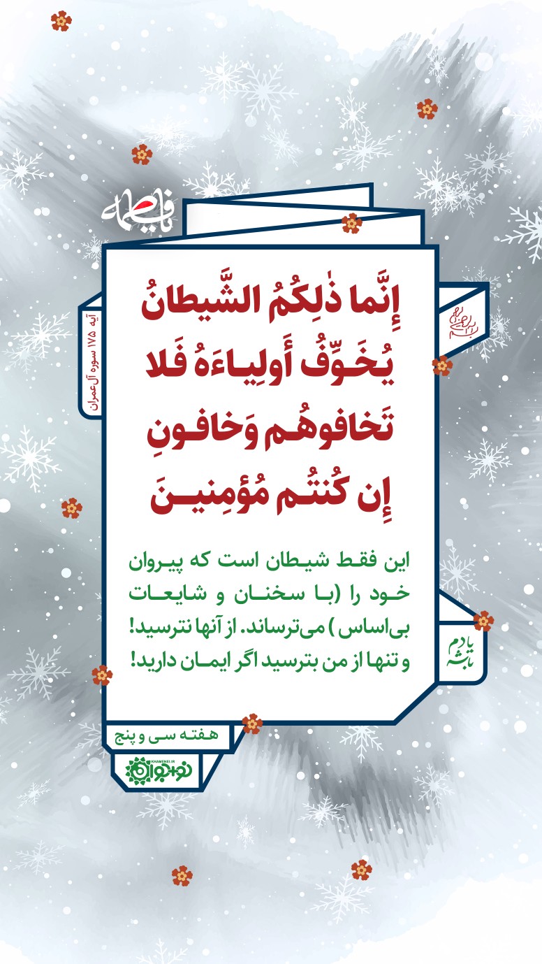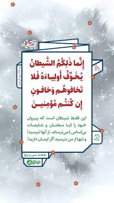 این فقط شیطان است که پیروان خود را (با سخنان و شایعات بیاساس) میترساند. از آنها نترسید! و تنها از من بترسید اگر ایمان دارید!