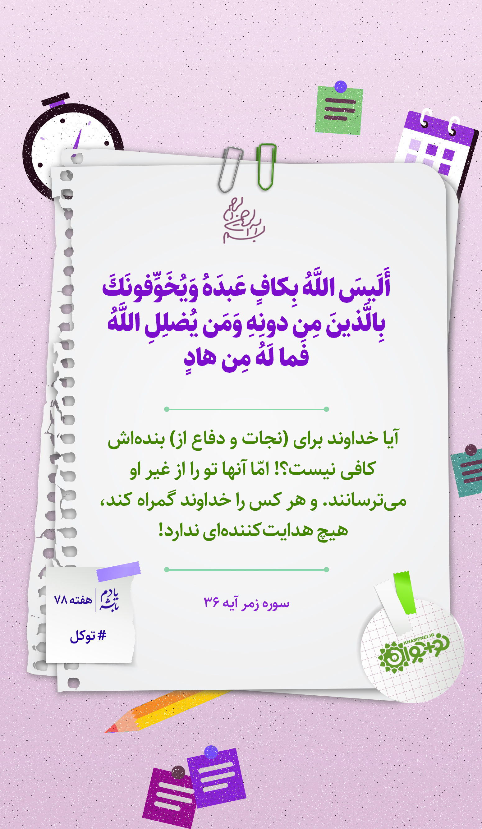 آیا خداوند برای (نجات و دفاع از) بندهاش کافی نیست؟! امّا آنها تو را از غیر او میترسانند. و هر کس را خداوند گمراه کند، هیچ هدایتکنندهای ندارد!