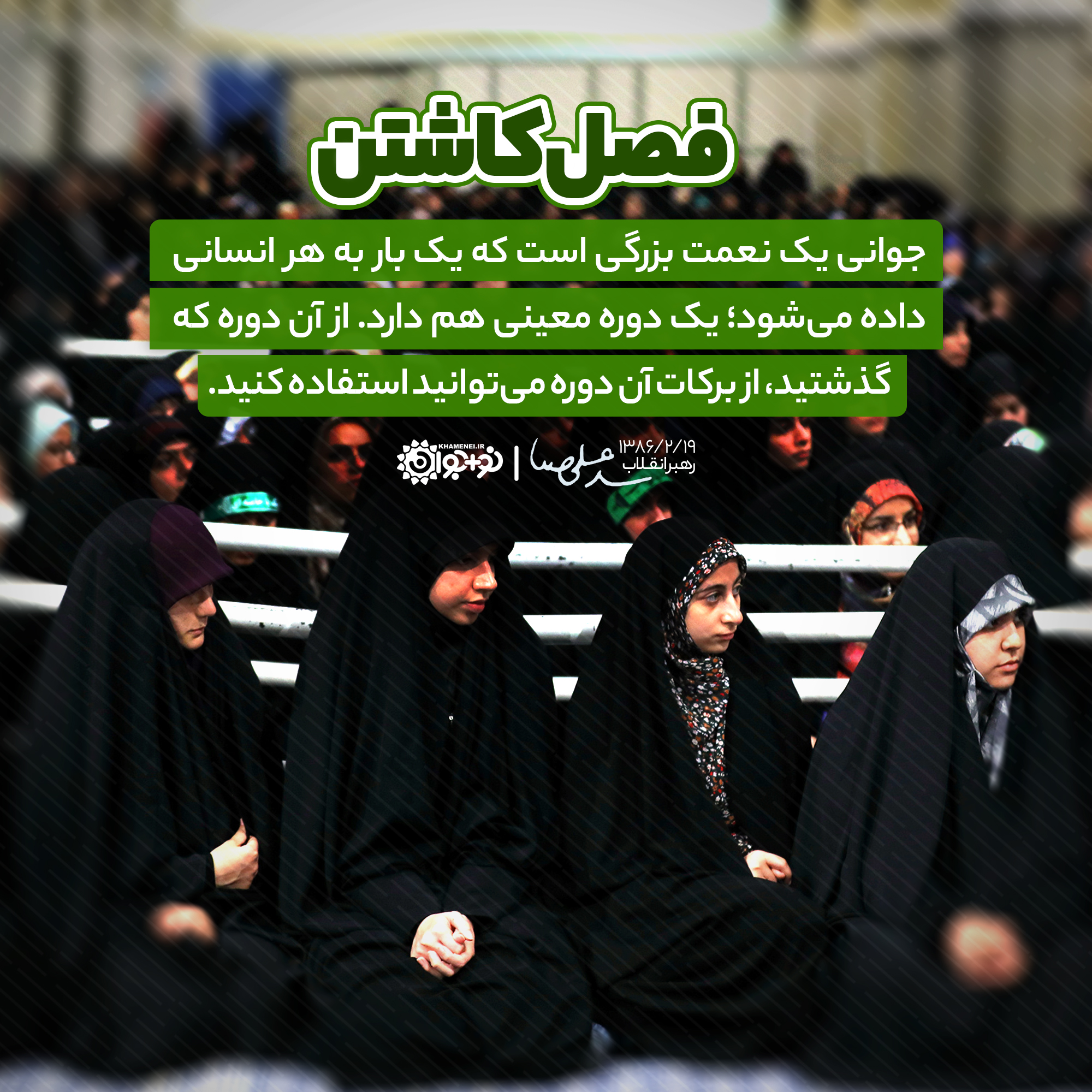 جوانی یک نعمت بزرگی است که یک بار به هر انسانی داده میشود؛ یک دوره معینی هم دارد. از آن دوره که گذشتید، از برکات آن دوره میتوانید استفاده کنید.