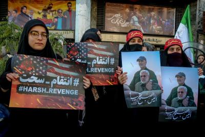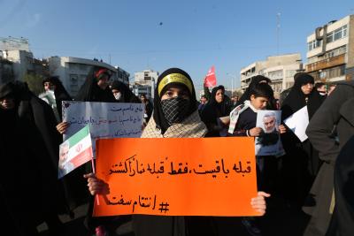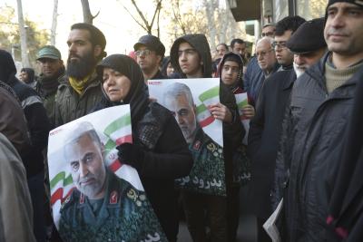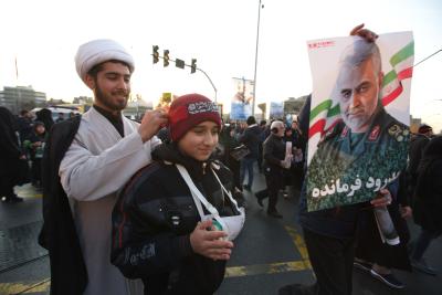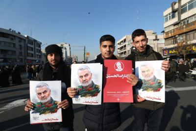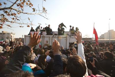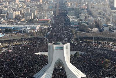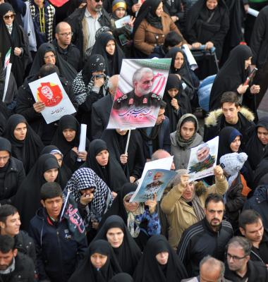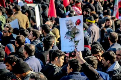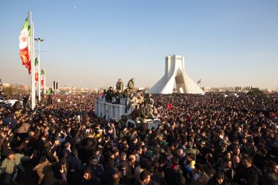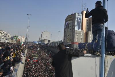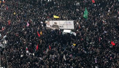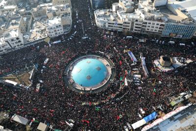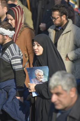 اقامه نماز بر پیکر شهید سپهبد قاسم سلیمانی و یاران مجاهد او