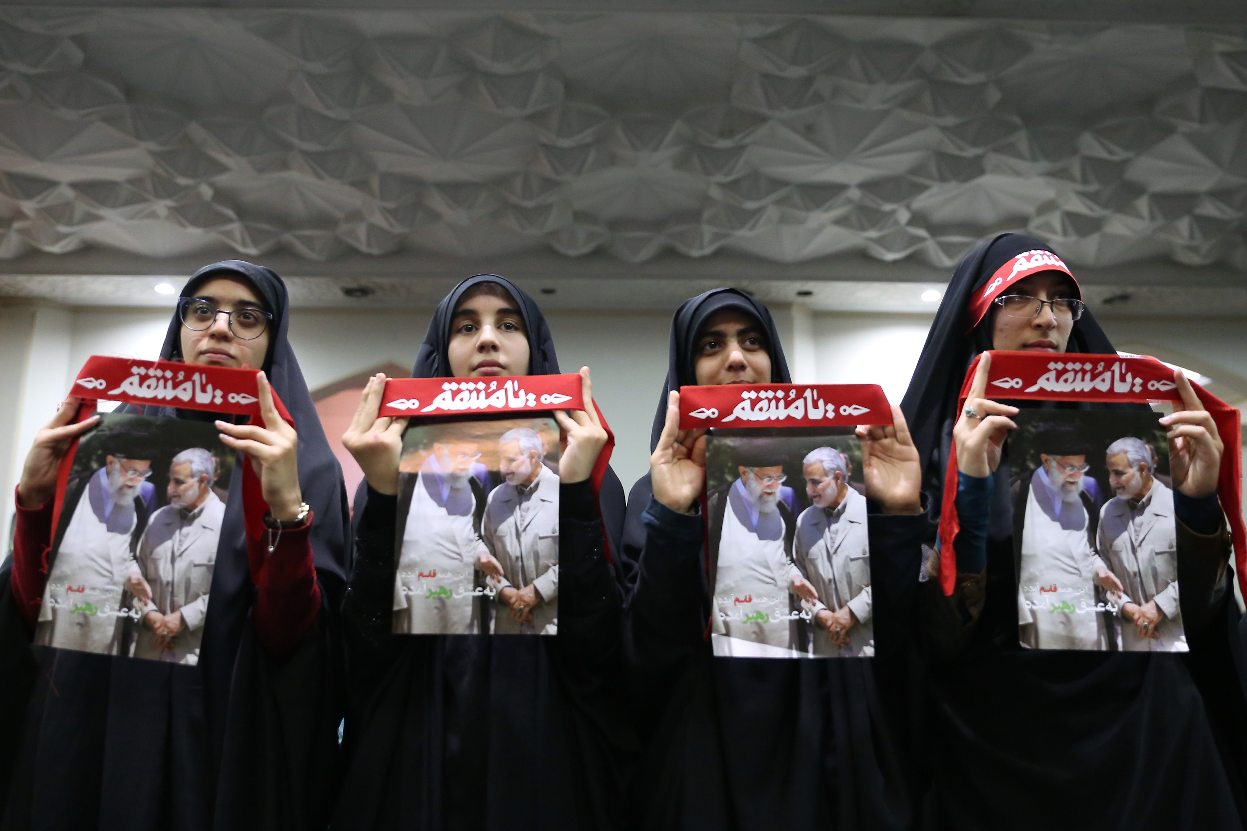 اقامه نماز بر پیکر شهید سپهبد قاسم سلیمانی و یاران مجاهد او