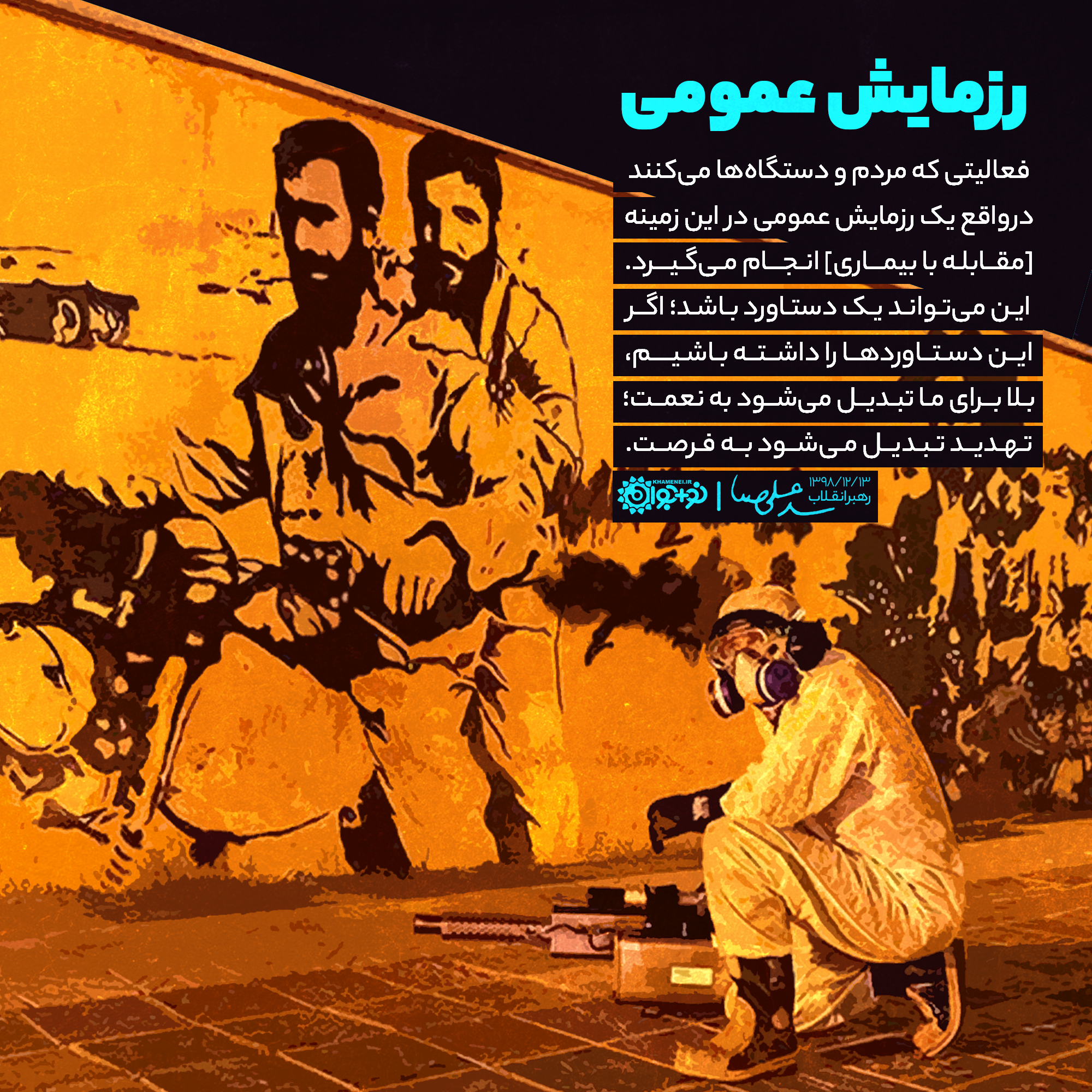 فعّالیتی که مردم و دستگاهها میکنند در واقع یک رزمایش عمومی در این زمینه[مقابله با بیماری] انجام میگیرد. این میتواند یک دستاورد باشد؛ اگر این دستاوردها را داشته باشیم، بلا برای ما تبدیل میشود به نعمت، تهدید تبدیل میشود به فرصت.