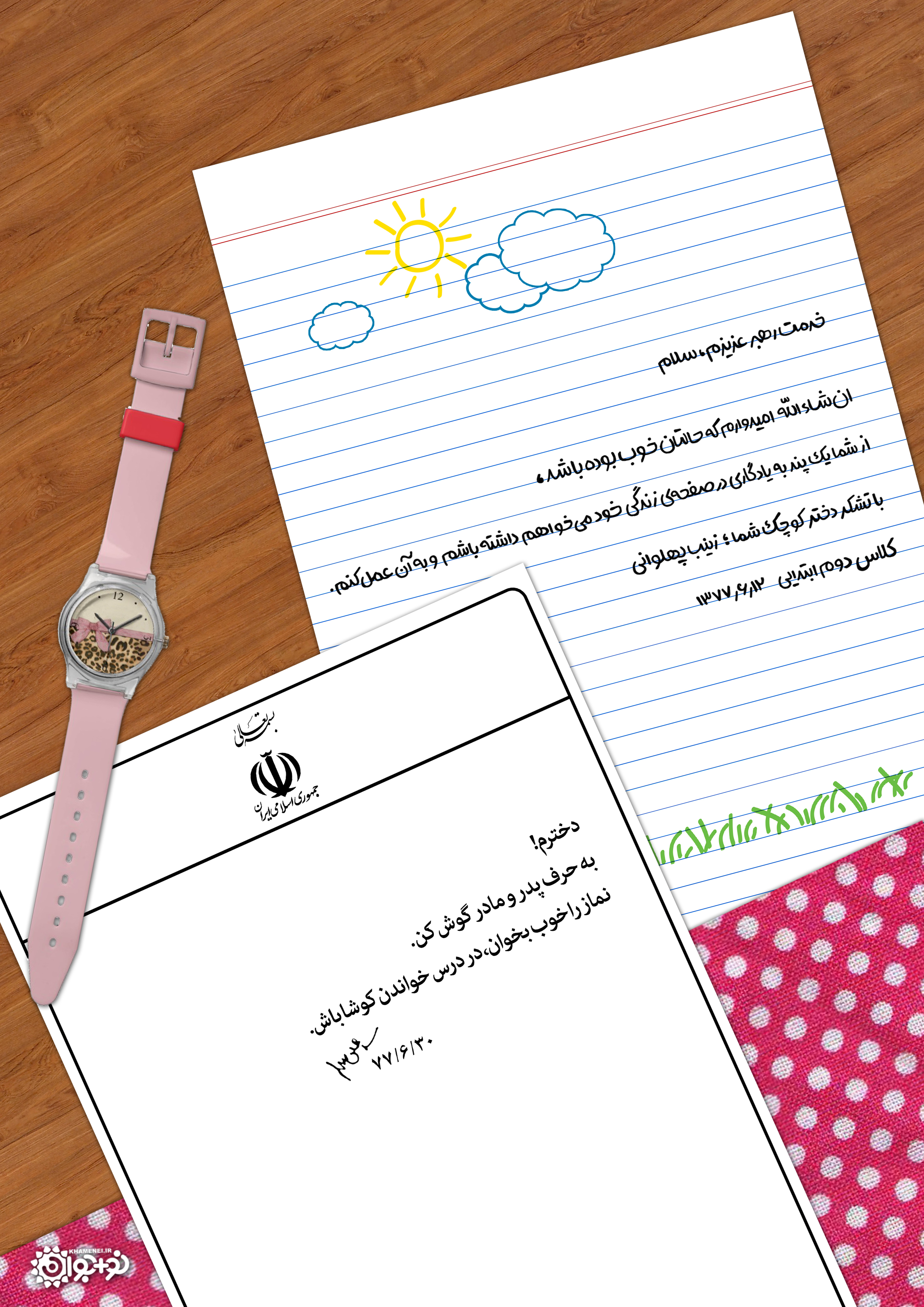 دخترم! به حرف پدر و مادر گوش کن. نماز را خوب بخوان، در درس خواندن کوشا باش.