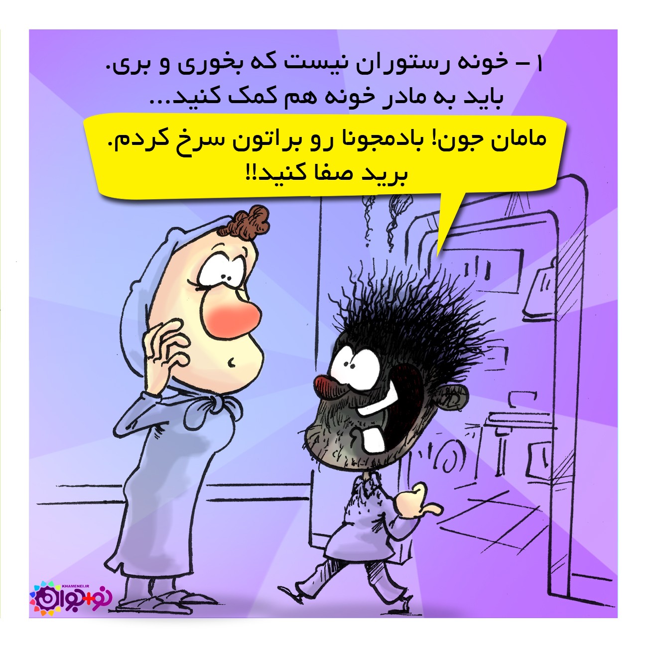 خونه رستوران نیست که بخوری و بری. باید به مادر خونه هم کمک کنید...