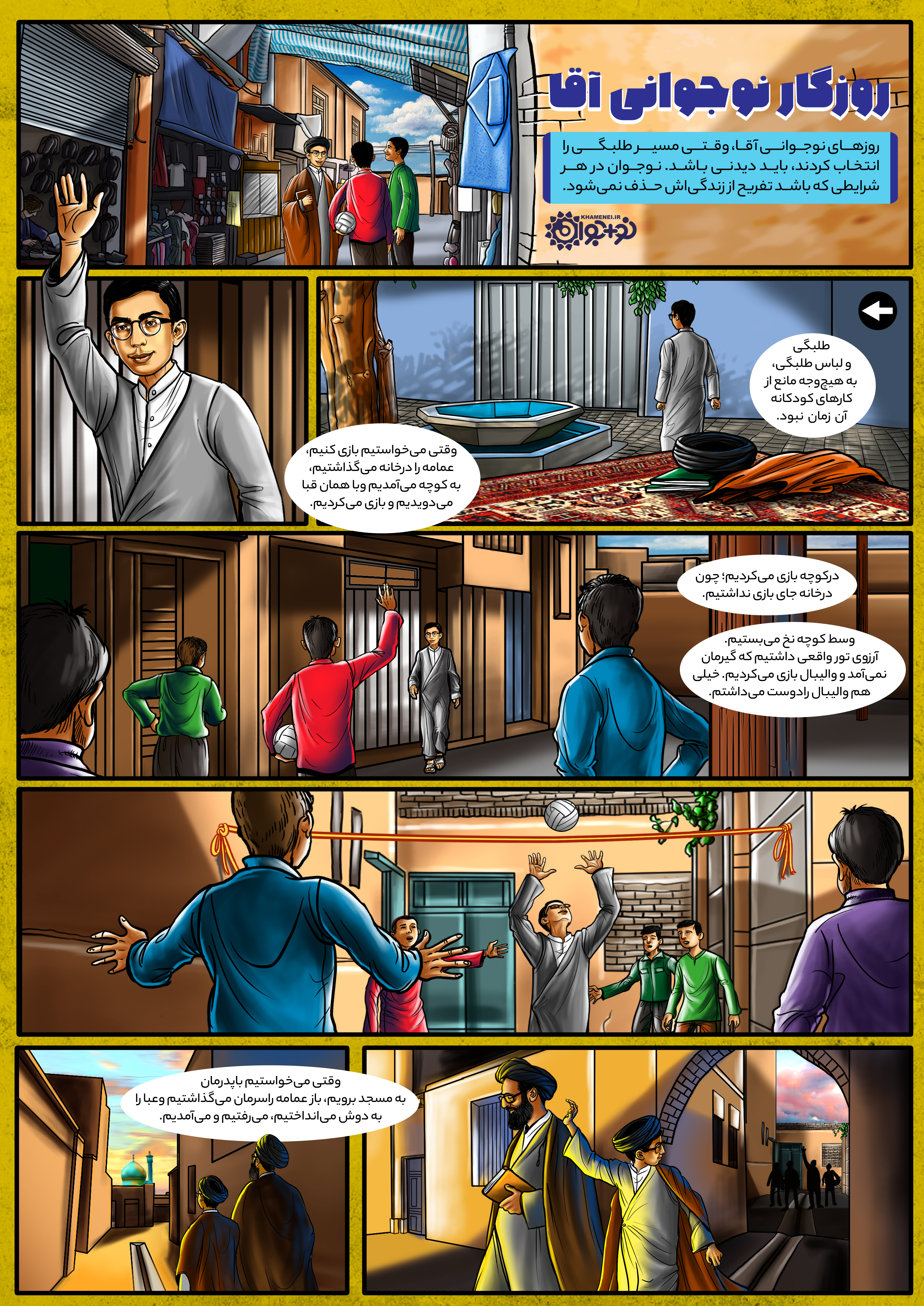 روزهای نوجوانی آقا، وقتی مسیر طلبگی را انتخاب کردند، باید دیدنی باشد. نوجوان در هر شرایطی که باشد تفریح از زندگیاش حذف نمیشود.
