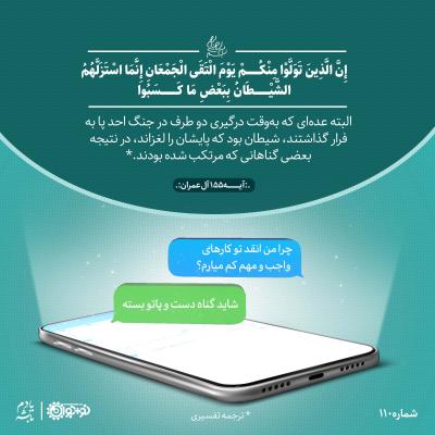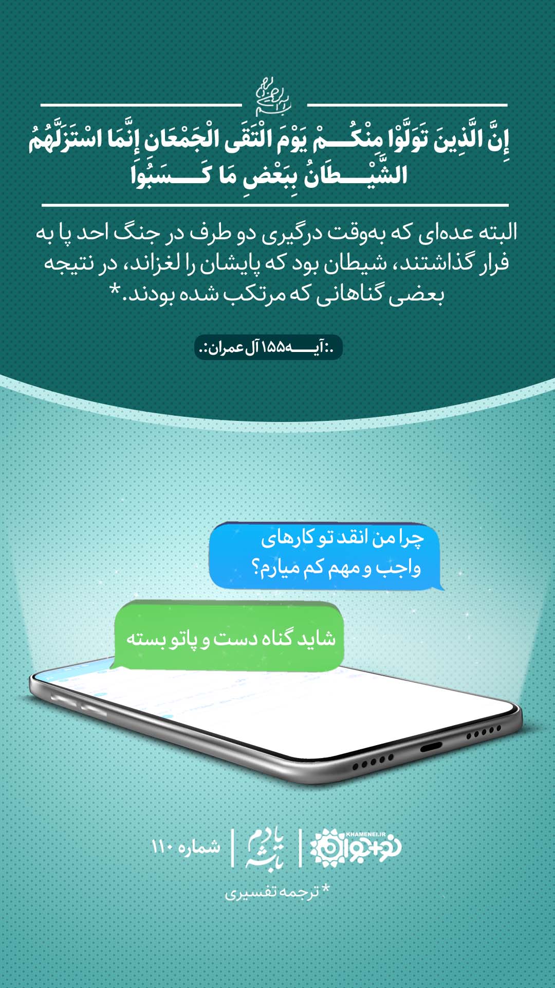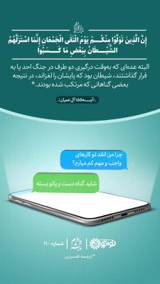 البته عدهای که به وقت درگیری دو طرف در جنگ احد پا به فرار گذاشتند، شیطان بود که پایشان را لغزاند، در نتیجه بعضی گناهانی که مرتکب شده بودند.*