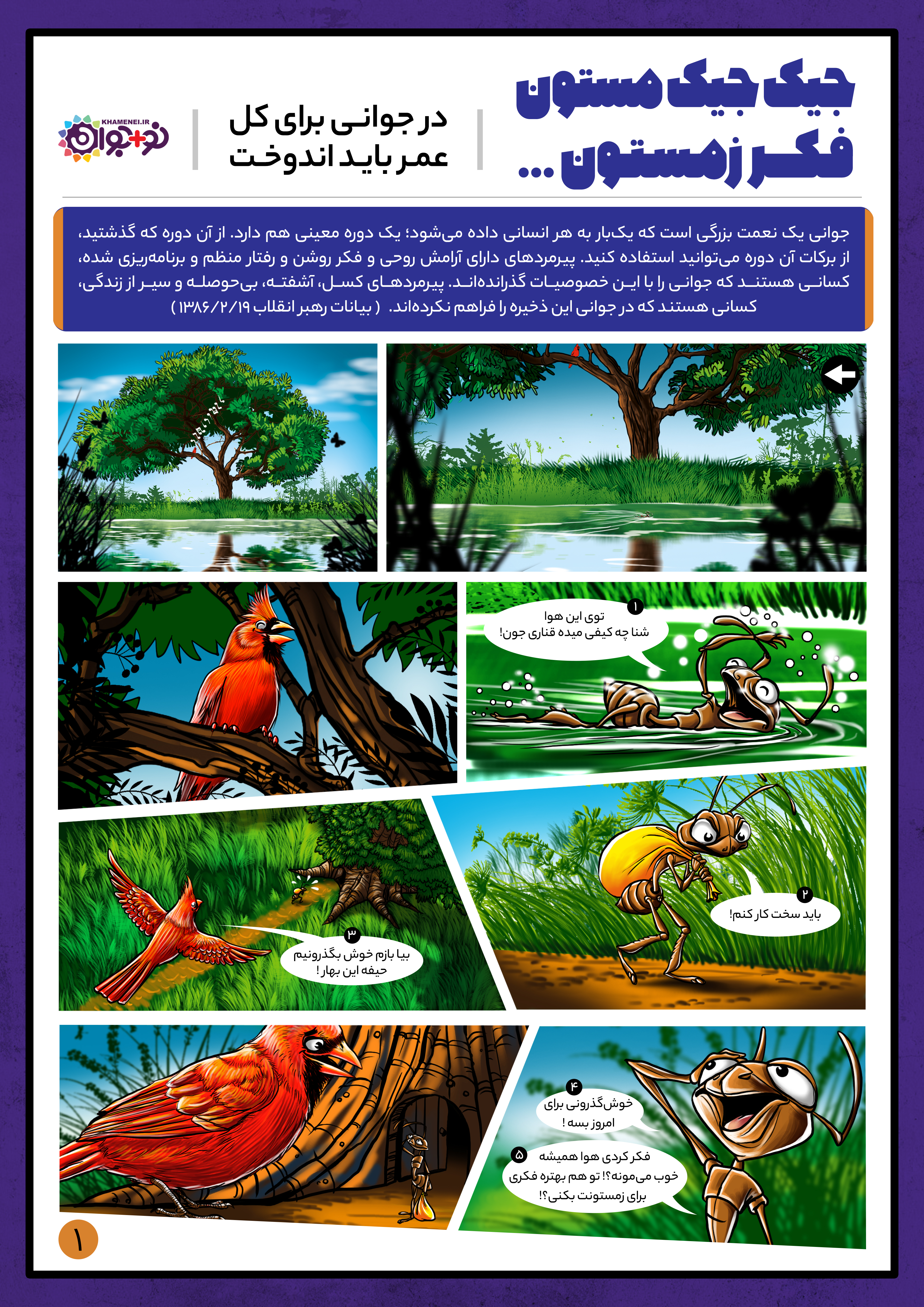 جوانی یک نعمت بزرگی است که یک بار به هر انسانی داده میشود؛ یک دوره معینی هم دارد. از آن دوره که گذشتید، از برکات آن دوره میتوانید استفاده کنید. پیرمردهای دارای آرامش روحی و فکر روشن و رفتار منظم و برنامهریزی شده، کسانی هستند که جوانی را با این خصوصیات گذراندهاند. پیرمردهای کسل، آشفته، بیحوصله، سیر از زندگی، کسانی هستند که در جوانی این ذخیره را فراهم نکردهاند.