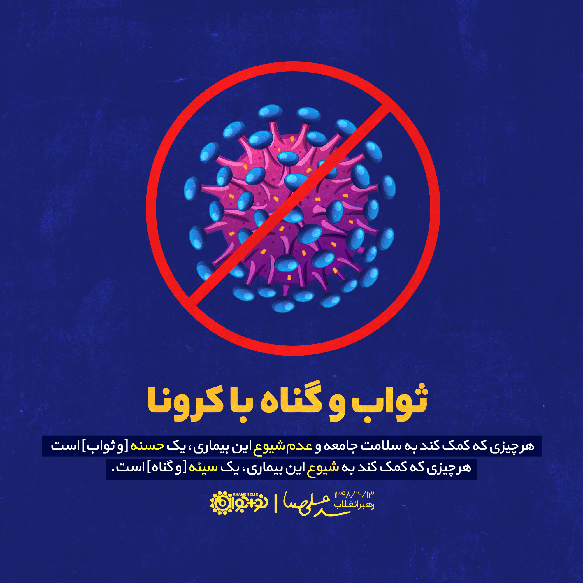 هر چیزی که کمک کند به سلامت جامعه و عدم شیوع این بیماری، یک حسنه [و ثواب] است. هر چیزی که کمک کند به شیوع این بیماری، یک سیّئه [و گناه] است.