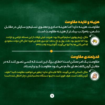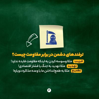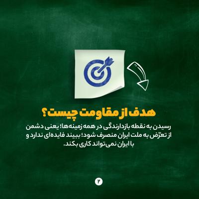 هدف از مقاومت رسیدن به نقطه بازدارندگی در همه زمینههاست؛ یعنی دشمن از تعرّض به ملت ایران منصرف شود؛ ببیند فایدهای ندارد و با ایران نمیتواند کاری بکند.