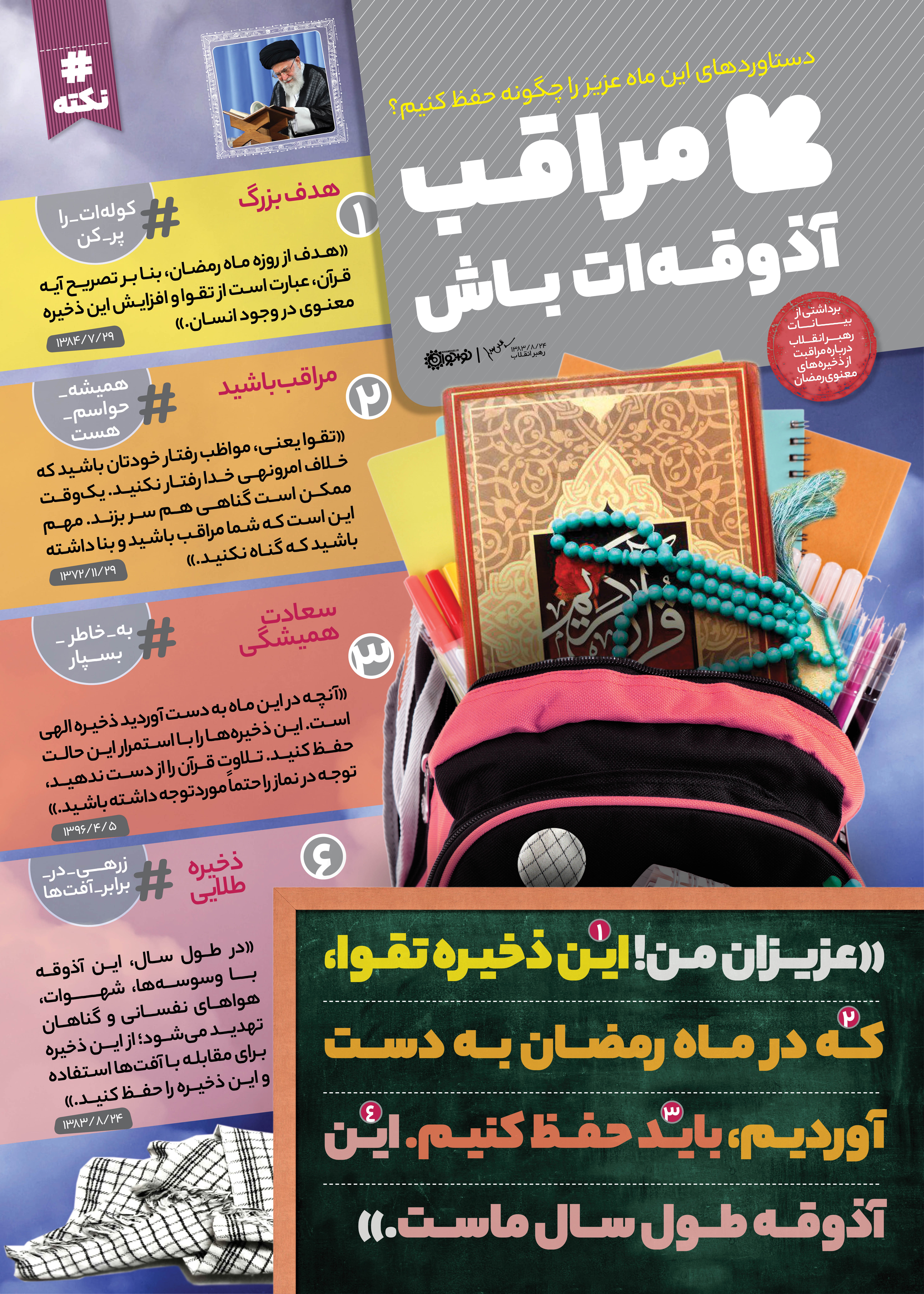 عزیزان من! این ذخیره تقوا، که در ماه رمضان به دست آوردیم، باید حفظ کنیم. این آذوقه طول سال ماست.