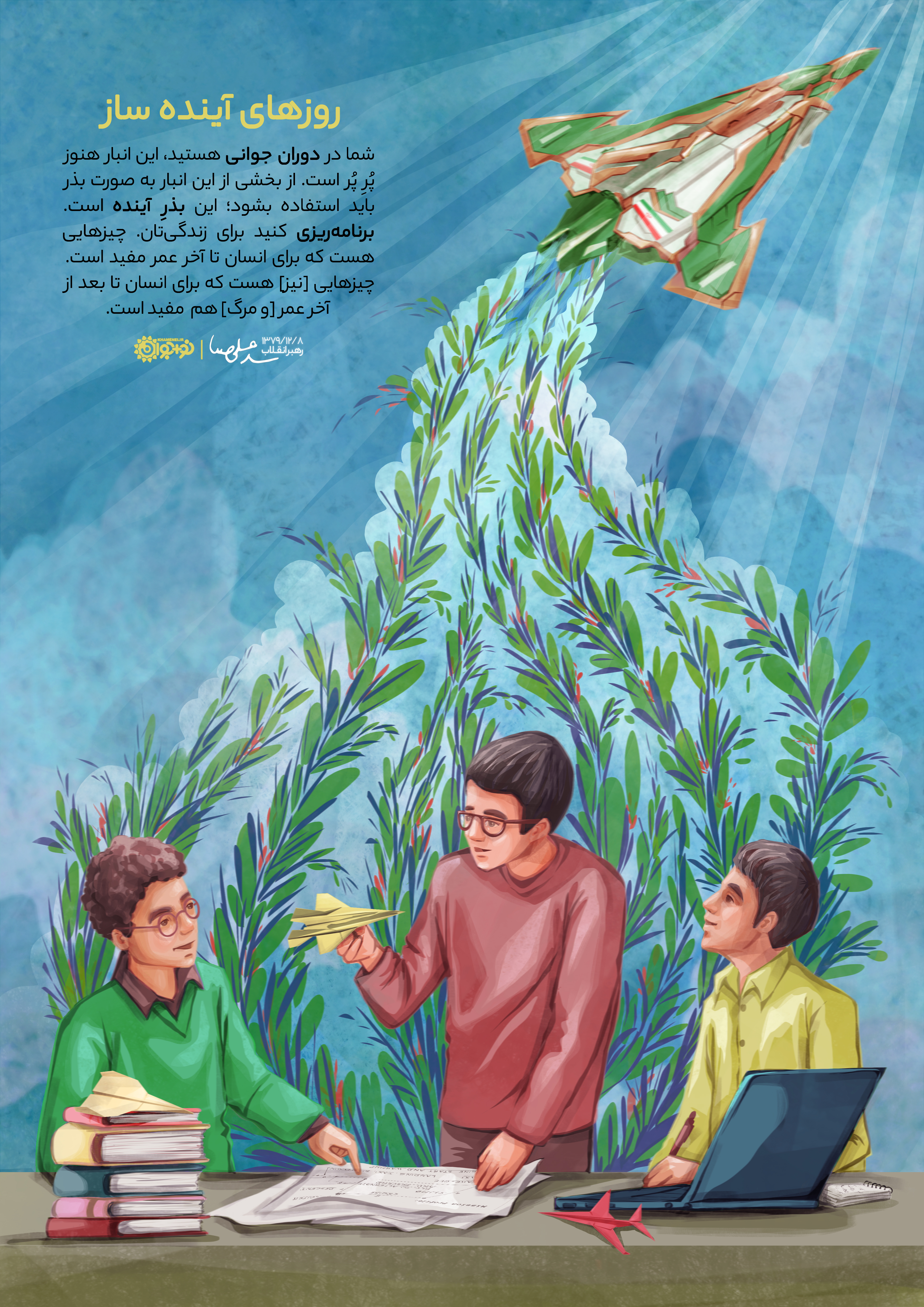شما در دوران جوانى هستید، این انبار هنوز پُرِ پُر است. از بخشى از این انبار به صورت بذر باید استفاده بشود؛ این بذرِ آینده است. برنامهریزى کنید براى زندگیتان. چیزهایى هست که براى انسان تا آخر عمر مفید است. چیزهایى [نیز] هست که براى انسان تا بعد از آخر عمر [و مرگ] هم مفید است.