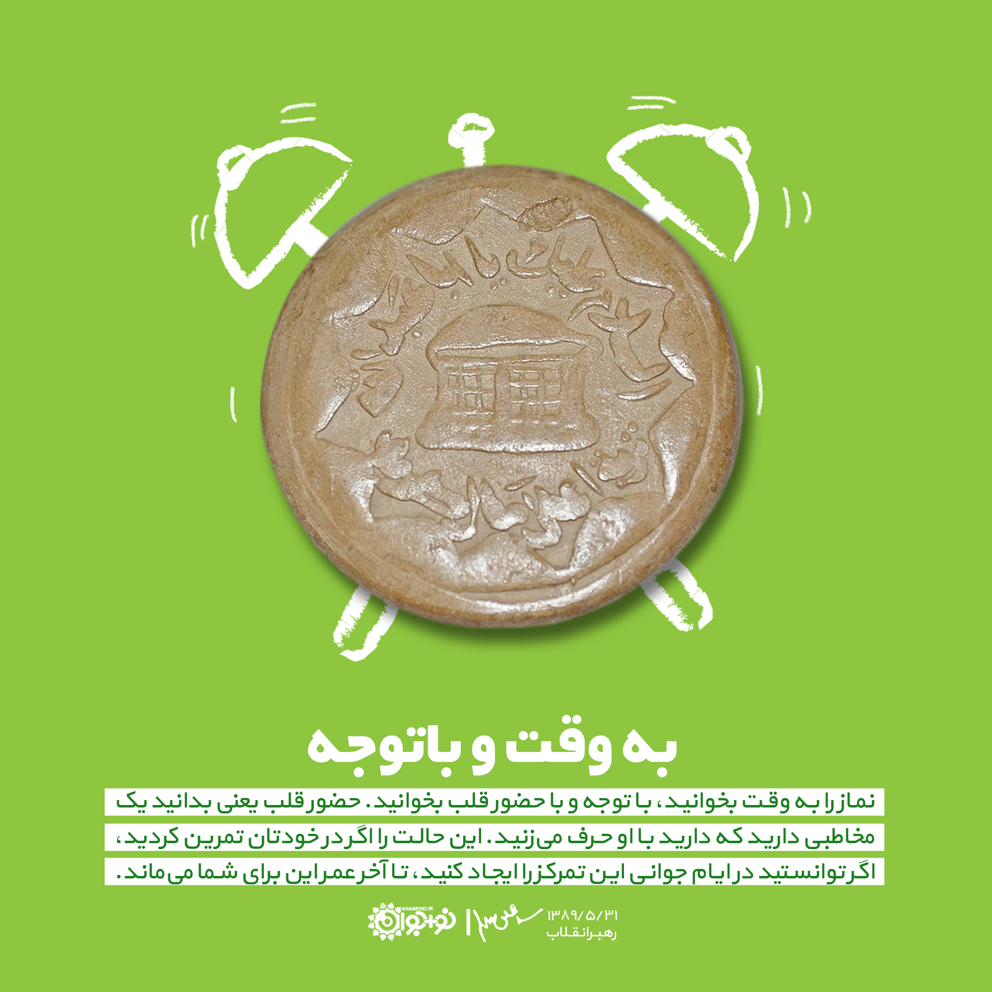 نماز را بهوقت بخوانید، با توجه و با حضور قلب بخوانید. حضور قلب یعنی بدانید یک مخاطبی دارید که دارید با او حرف میزنید. این حالت را اگر در خودتان تمرین کردید، اگر توانستید در ایام جوانی این تمرکز را ایجاد کنید، تا آخر عمر این برای شما میماند.