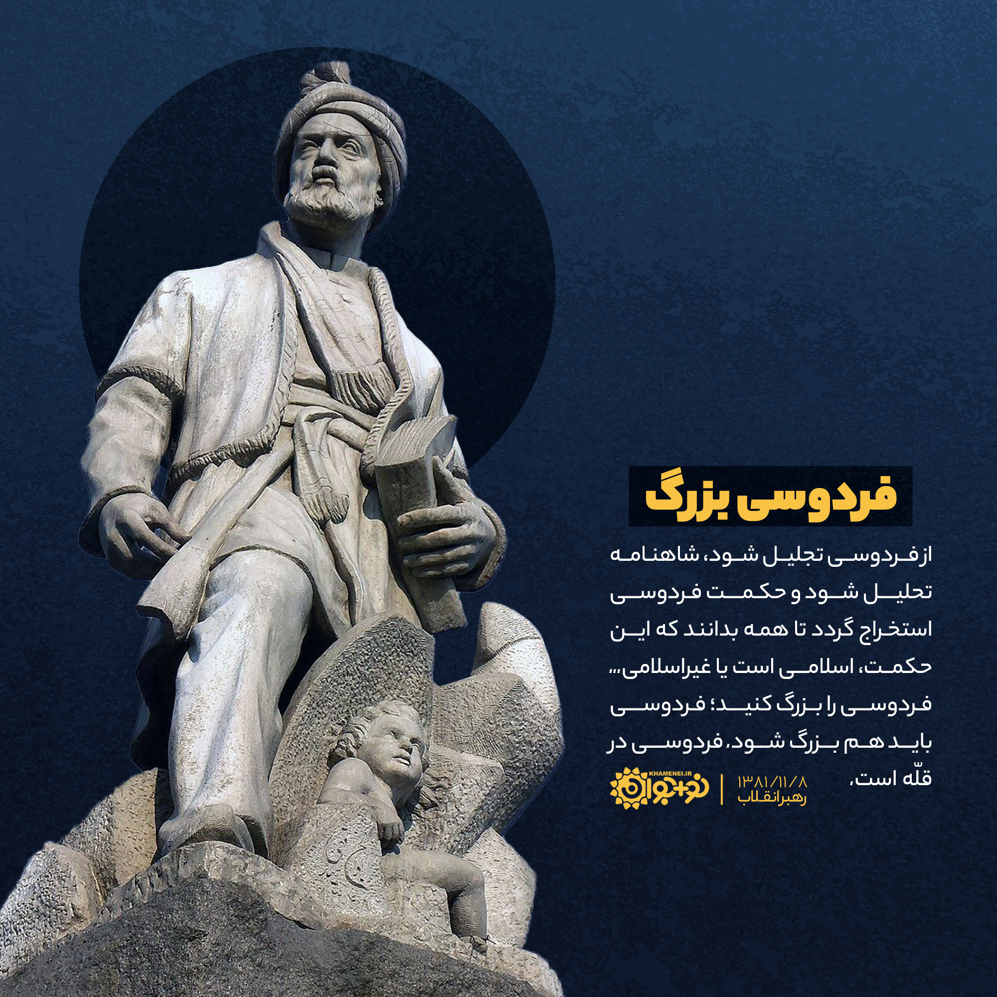 از فردوسی تجلیل شود، شاهنامه تحلیل شود و حکمت فردوسی استخراج گردد تا همه بدانند که این حکمت، اسلامی است یا غیراسلامی ... فردوسی را بزرگ کنید. فردوسی باید هم بزرگ شود. فردوسی در قلّه است.