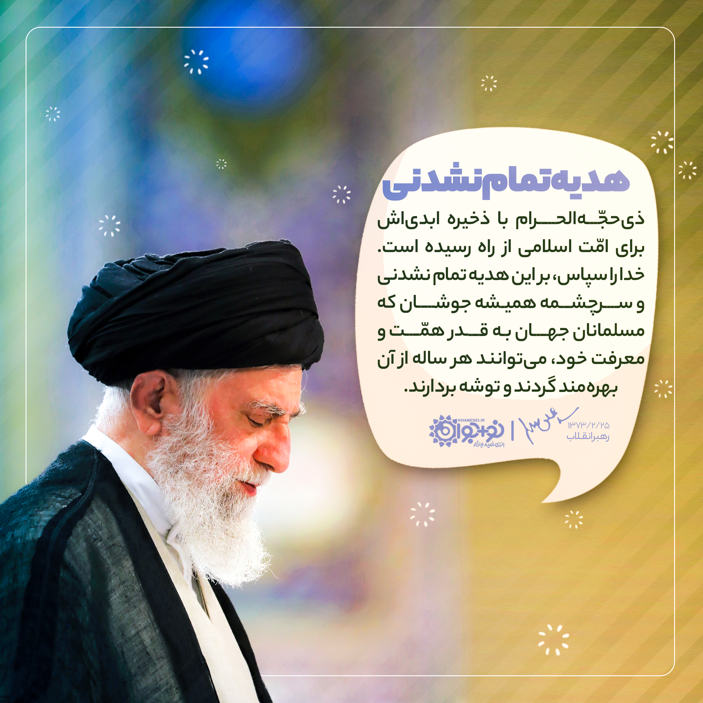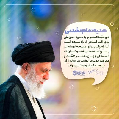ذیحجة الحرام با ذخیره ابدیاش برای امّت اسلامی از راه رسیده است. خدا را سپاس، بر این هدیه تمام نشدنی و سرچشمه همیشه جوشان که مسلمانان جهان به قدر همت و معرفت خود، میتوانند هر ساله از آن بهرهمند گردند و توشه بردارند.