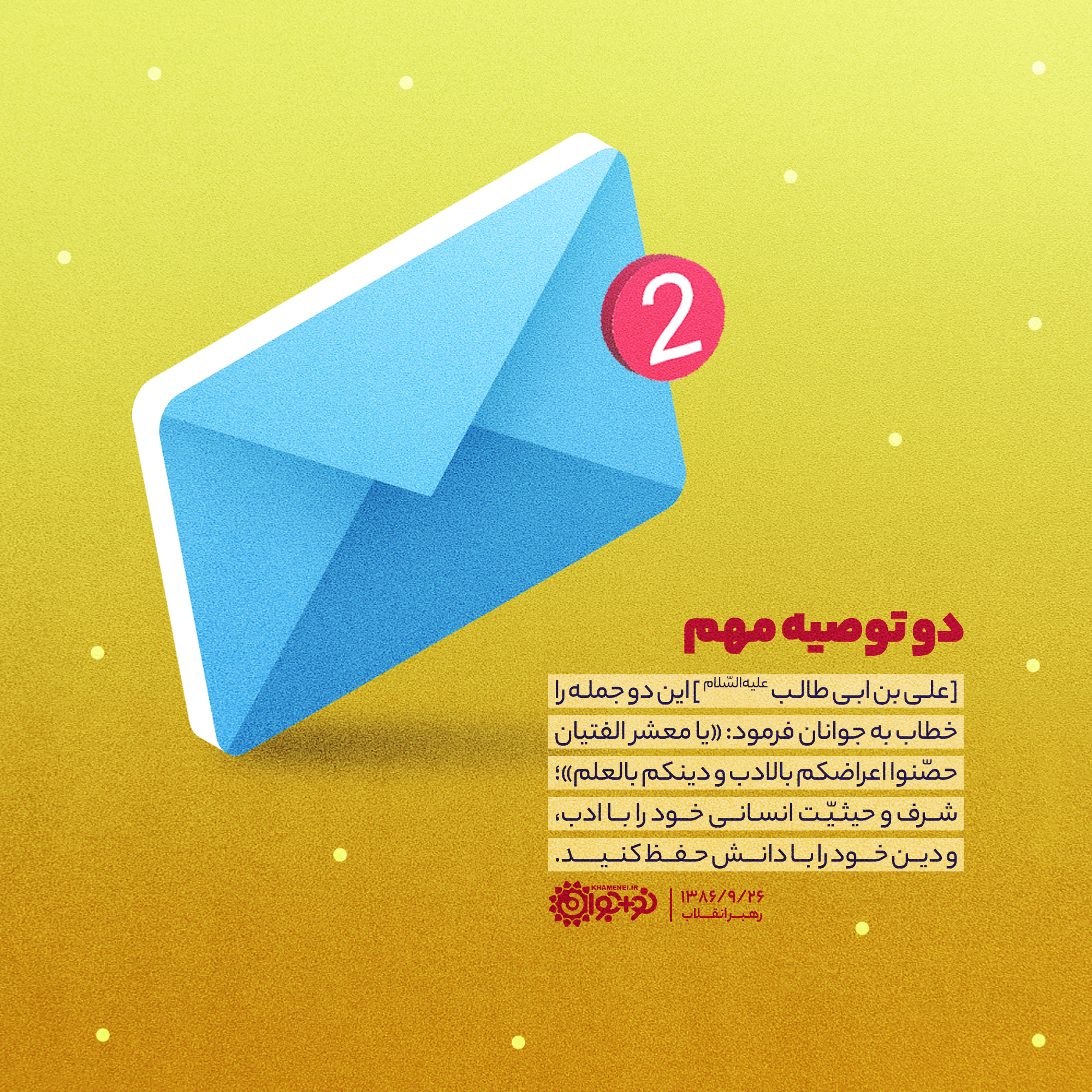 [علیبنابیطالب علیهالسّلام] این دو جمله را خطاب به جوانان فرمود: «یا معشر الفتیان حصّنوا اعراضکم بالادب و دینکم بالعلم»؛ شرف و حیثیّت انسانی خود را با ادب و دین خود را با دانش حفظ کنید.
