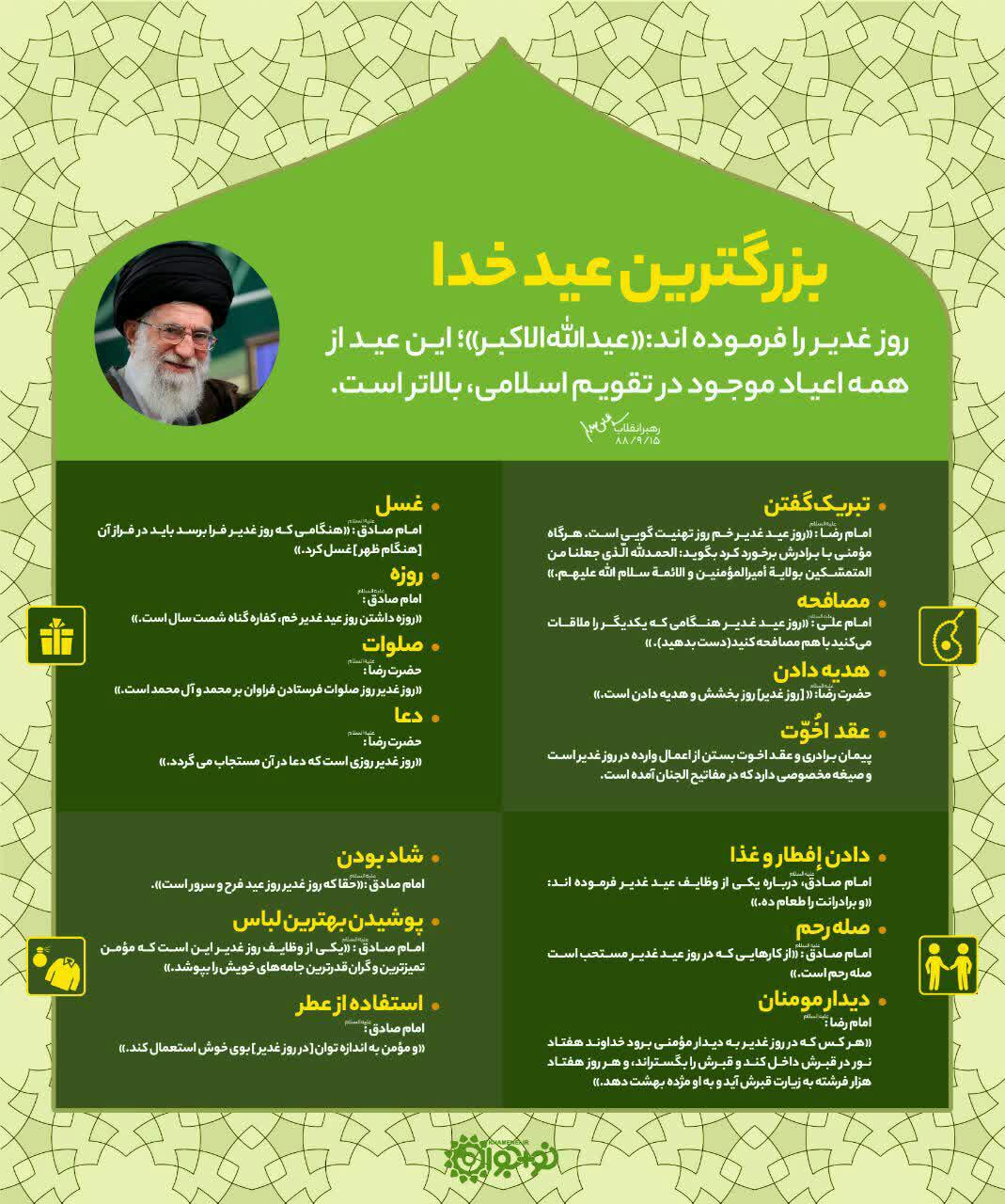 روز غدیر را فرمودهاند: «عیداللهالاکبر»؛ این عید از همه اعیاد موجود در تقویم اسلامی، بالاتر است.