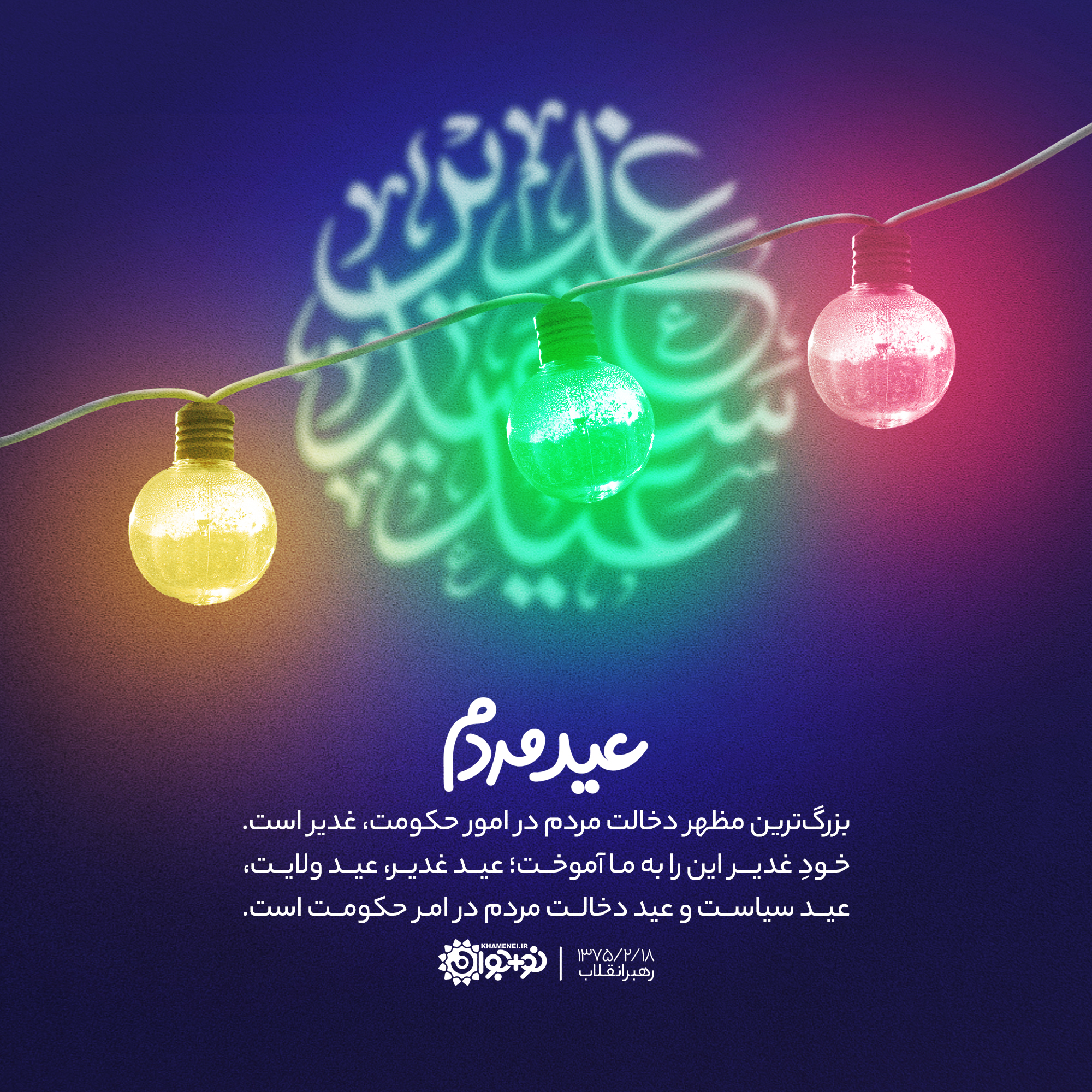 بزرگترین مظهر دخالت مردم در امور حکومت، غدیر است. خودِ غدیر این را به ما آموخت؛ عید غدیر، عید ولایت، عید سیاست و عید دخالت مردم در امر حکومت است،