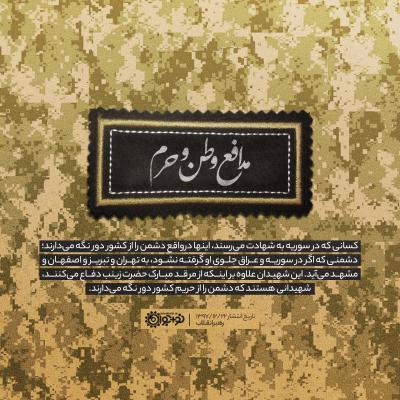 کسانی که در سوریه به شهادت میرسند، اینها درواقع دشمن را از کشور دور نگه میدارند؛ دشمنی که اگر در سوریه و عراق جلوی او گرفته نشود، به تهران و تبریز و اصفهان و مشهد میآید. این شهیدان علاوه بر اینکه از مرقد مبارک حضرت زینب دفاع میکنند، شهیدانی هستند که دشمن را از حریم کشور دور نگه میدارند.
