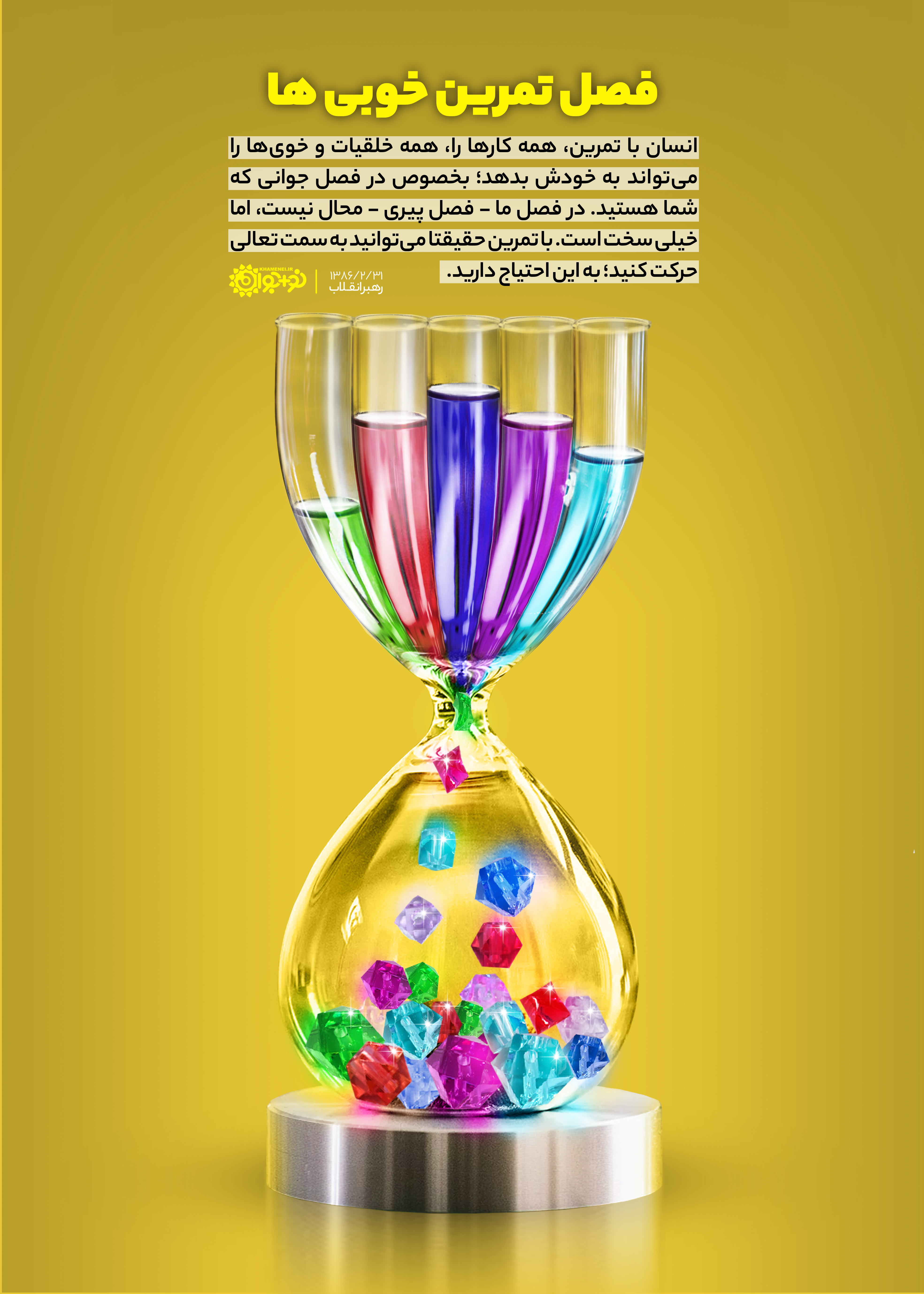 انسان با تمرین، همه کارها را، همه خلقیات و خویها را میتواند به خودش بدهد؛ بخصوص در فصل جوانی که شما هستید. در فصل ما -فصل پیری- محال نیست، اما خیلی سخت است ... با تمرین حقیقتاً میتوانید بهسمت تعالی حرکت کنید؛ به این احتیاج دارید.