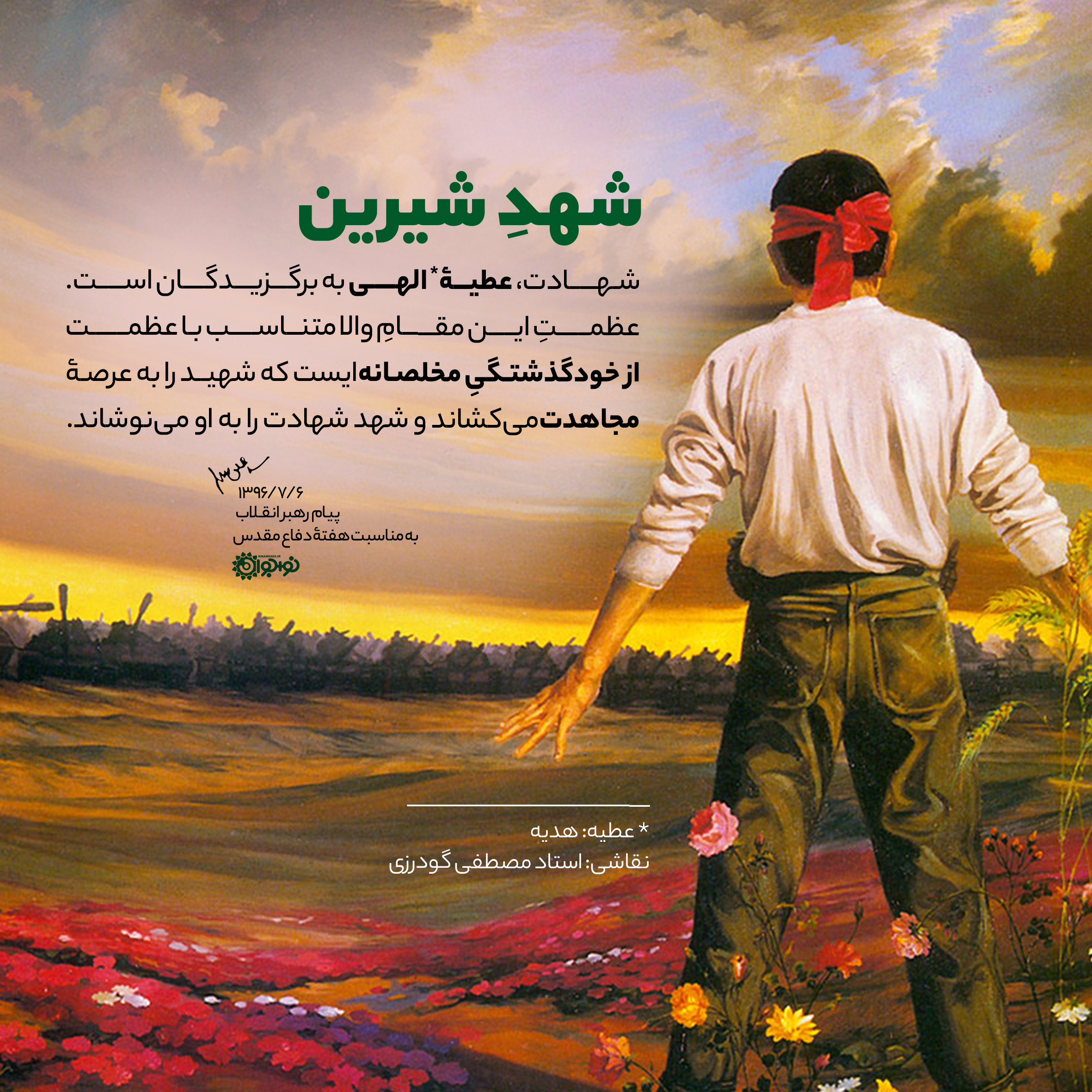 شهادت، عطیه الهی به برگزیدگان است. عظمت این مقام والا متناسب با عظمت از خودگذشتگی مخلصانهئی است که شهید را به عرصه مجاهدت میکشاند و شهد شهادت را به او مینوشاند.