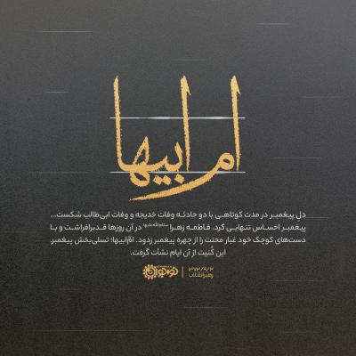 دلِ پیغمبر در مدت کوتاهی با دو حادثه وفات خدیجه و وفات ابیطالب شکست ... پیغمبر احساس تنهایی کرد. فاطمه زهرا سلاماللَّهعلیها در آن روزها قد برافراشت و با دستهای کوچک خود غبار محنت را از چهره پیغمبر زدود. امّابیها؛ تسلّی بخش پیغمبر. این کُنیت از آن ایام نشأت گرفت.