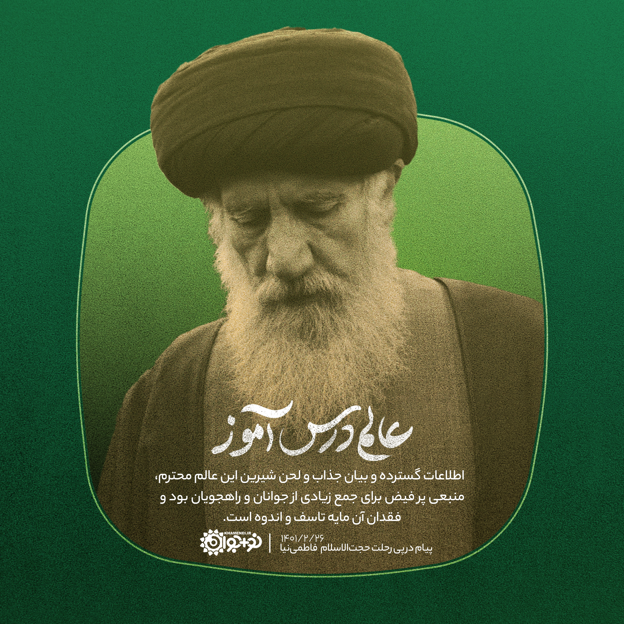 اطلاعات گسترده و بیان جذاب و لحن شیرین این عالم محترم، منبعی پر فیض برای جمع زیادی از جوانان و راهجویان بود و فقدان آن مایه تاسف و اندوه است.