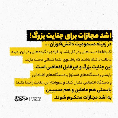 اگر واقعاً دستهایی در کار باشد و افرادی، گروههایی، در این زمینه دخالت داشته باشند که به نحوی حتماً کسانی دست دارند بایستی دستگاههای مسئول، دستگاههای اطلاعاتی و دستگاههای انتظامی دنبال کنند و این جنایت را پیدا کنند؛ بایستی هم عاملین هم مسببین به اشد مجازات محکوم بشوند.