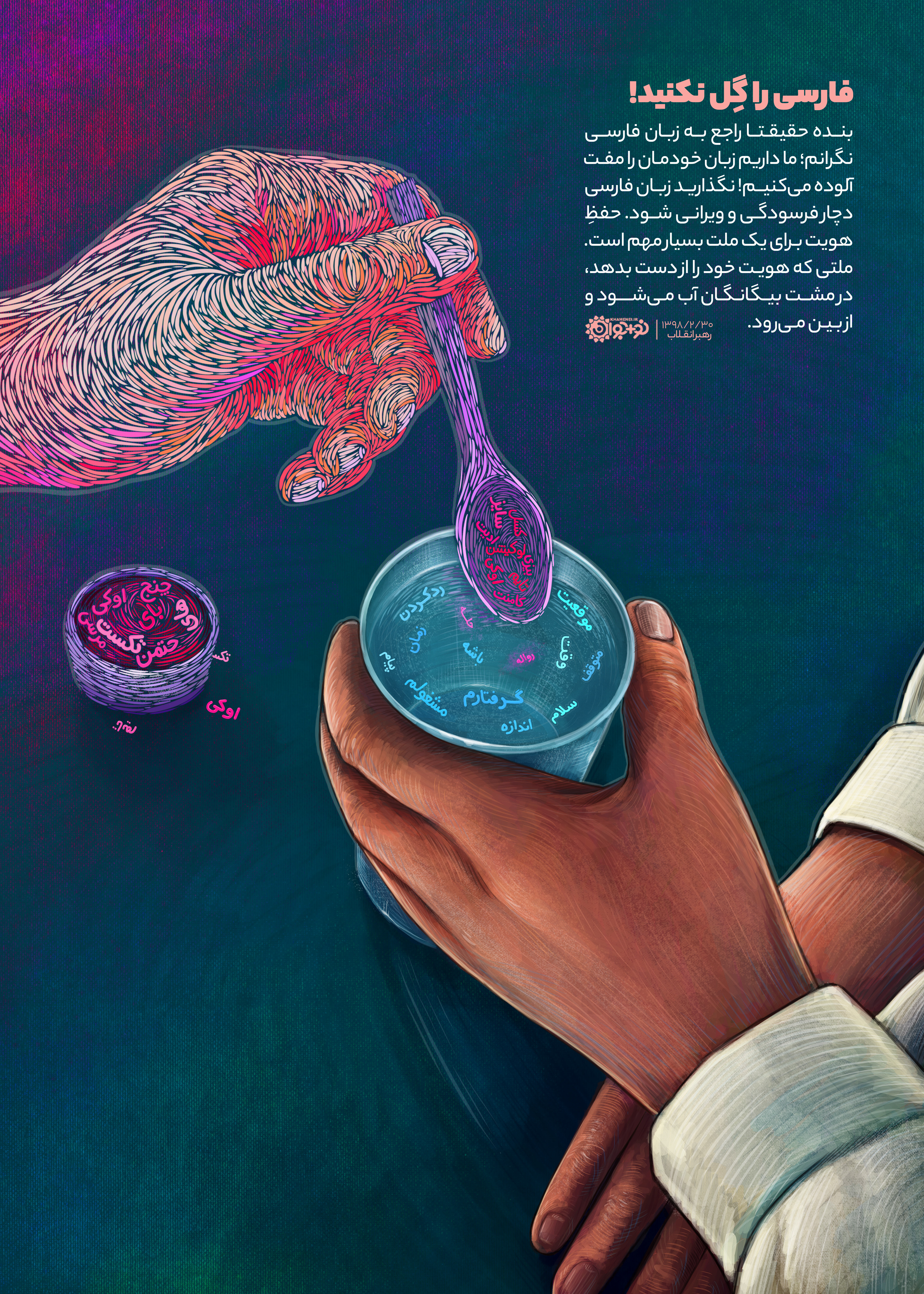 بنده حقیقتاً راجع به زبان فارسی نگرانم؛ ما داریم زبان خودمان را مفت آلوده میکنیم! نگذارید زبان فارسی دچار فرسودگی و دچار ویرانی شود. حفظ هویت برای یک ملت خیلی مهم است. ملتی که هویت خود را از دست بدهد، در مشت بیگانگان آب میشود و از بین میرود.