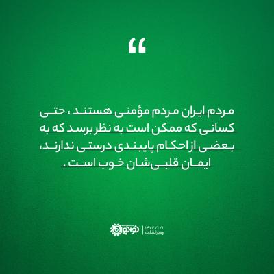 مردم ایران مردم مؤمنی هستند؛ حتی آن کسانی که ممکن است به نظر برسد که به بعضی از احکام اسلامی پایبندی درستی ندارند، ایمان قلبیشان خوب است.