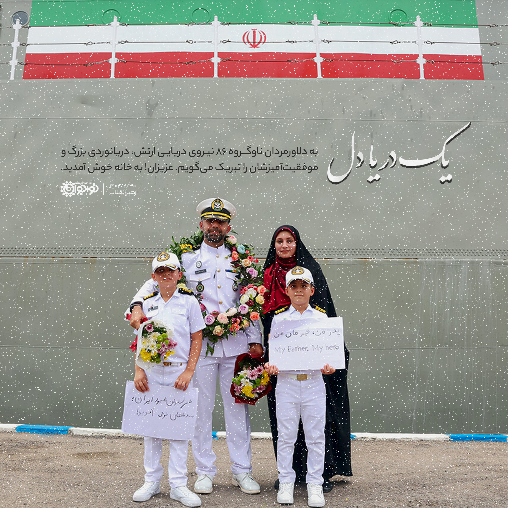 به دلاورمردان ناوگروه ۸۶ نیروی دریایی ارتش، دریانوردی بزرگ و موفقیتآمیزشان را تبریک میگویم. عزیزان! به خانه خوش آمدید.