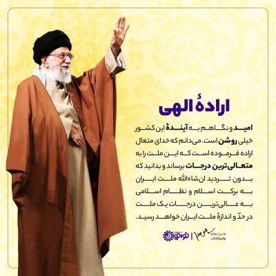 امید و نگاهم به آینده این کشور خیلی روشن است. میدانم که خدای متعال اراده فرموده است که این ملت را به متعالیترین درجات برساند و بدانید که بدون تردید انشاءالله ملت ایران به برکت اسلام و نظام اسلامی به عالیترین درجاتِ یک ملت در حدواندازه ملت ایران خواهد رسید.