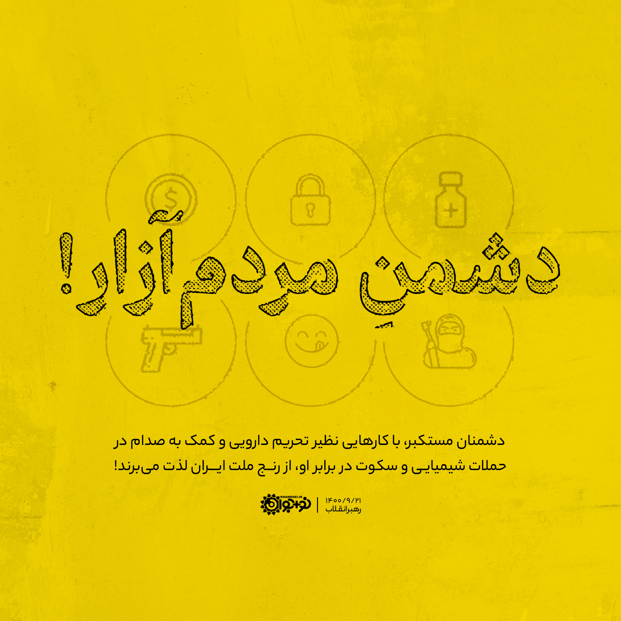 دشمنان مستکبر، با کارهایی نظیر تحریم دارویی و کمک به صدام در حملات شیمیایی و سکوت در برابر او، از رنج ملت ایران لذت میبرند!