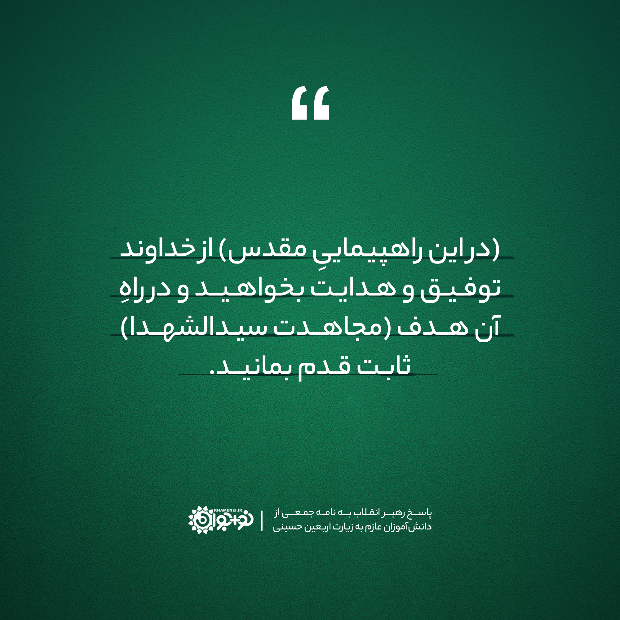 پاسخ رهبر انقلاب به نامه جمعی از دانشآموزان عازم به زیارت اربعین حسینی