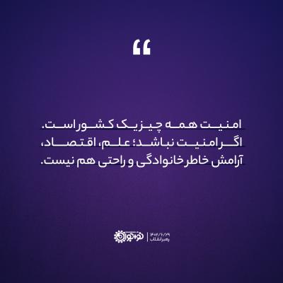 امنیت همهچیز است. اگر امنیت نباشد، علم، اقتصاد، آرامش خاطر خانوادگی و راحتی نیست.