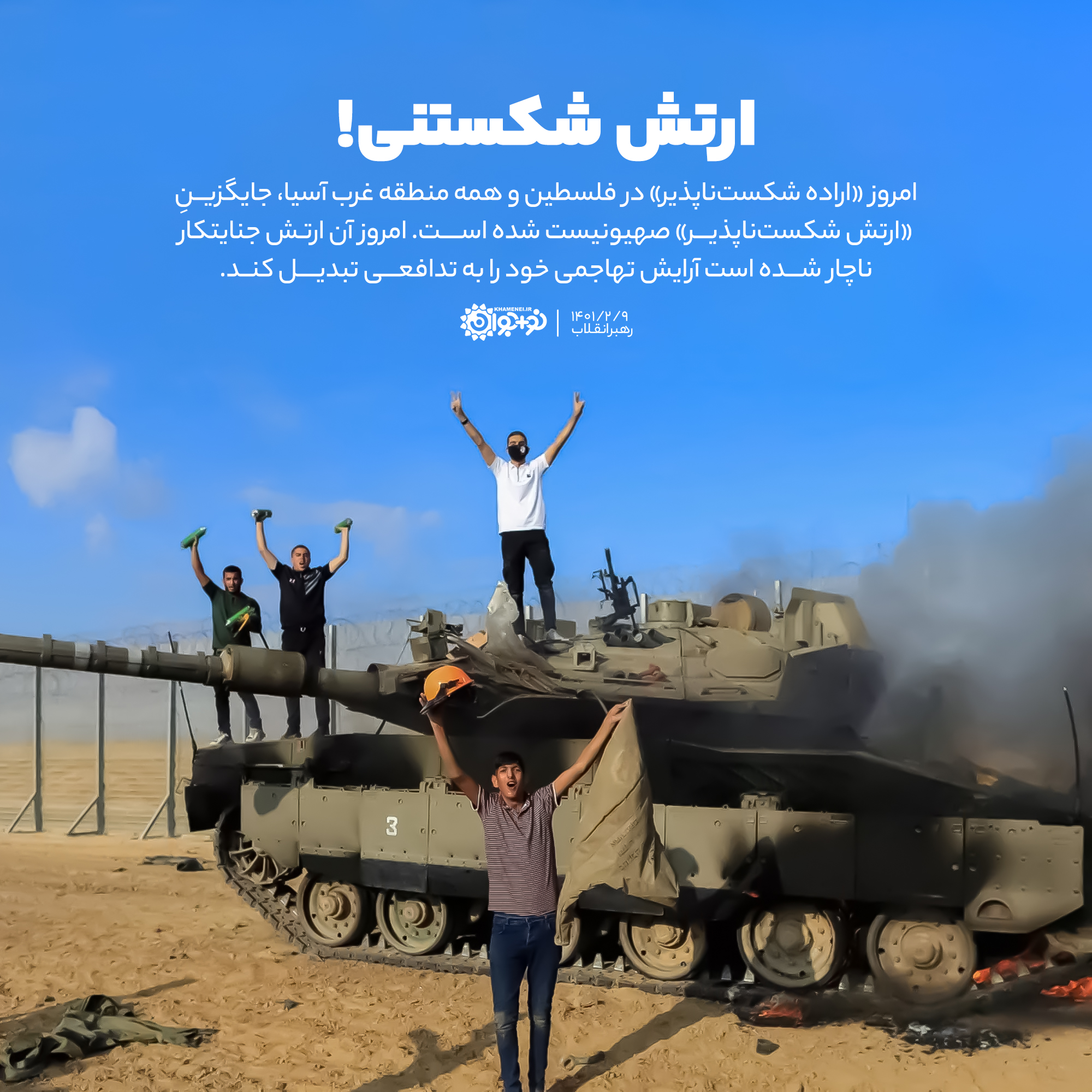 امروز «اراده شکستناپذیر» در فلسطین و همه منطقه غرب آسیا، جایگزین «ارتش شکستناپذیر» صهیونیست شده است. امروز آن ارتش جنایتکار ناچار شده است آرایش تهاجمی خود را به تدافعی تبدیل کند.