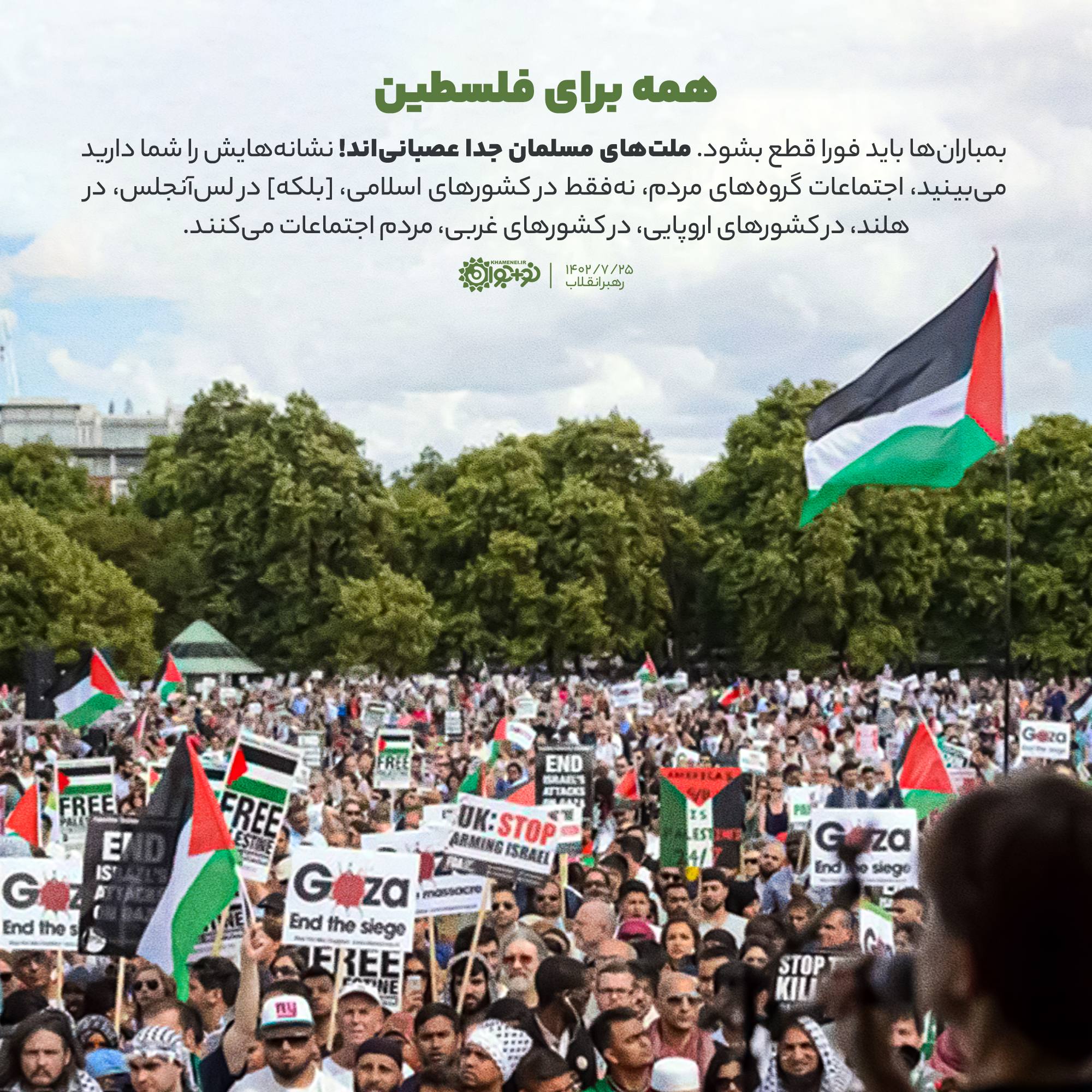 بمبارانها باید فوراً قطع بشود. ملتهای مسلمان جداً عصبانیاند؛ نشانههایش را شما دارید میبینید، اجتماعات گروههای مردم، نه فقط در کشورهای اسلامی، [بلکه] در لسآنجلس، در هلند، در کشورهای اروپایی؛ در کشورهای غربی، مردم اجتماعات میکنند.