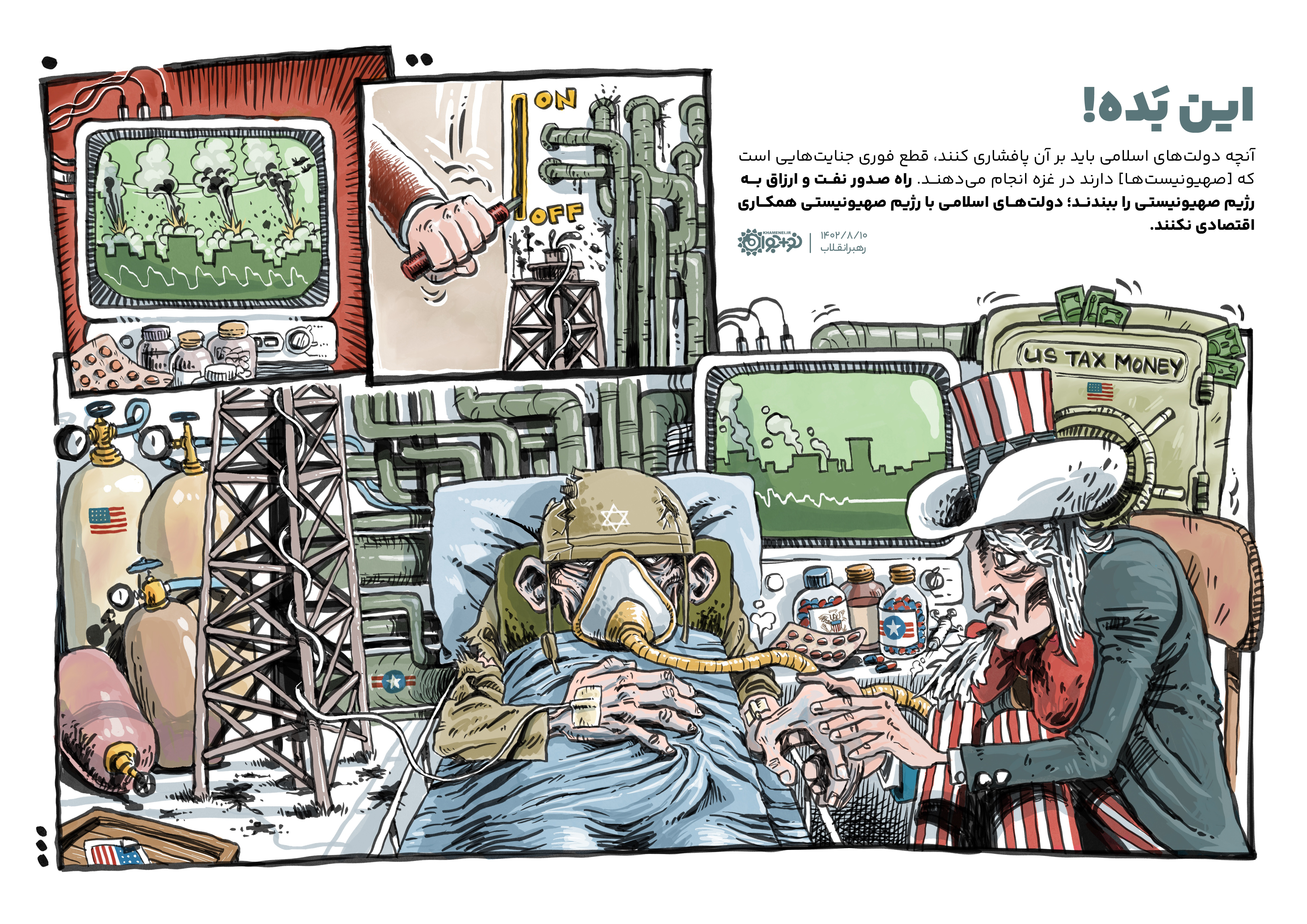 آنچه دولتهای اسلامی باید بر آن پافشاری کنند، قطع فوری جنایتهایی است که [صهیونیستها] دارند در غزه انجام میدهند. راه صدور نفت و ارزاق به رژیم صهیونیستی را ببندند؛ دولتهای اسلامی با رژیم صهیونیستی همکاری اقتصادی نکنند.