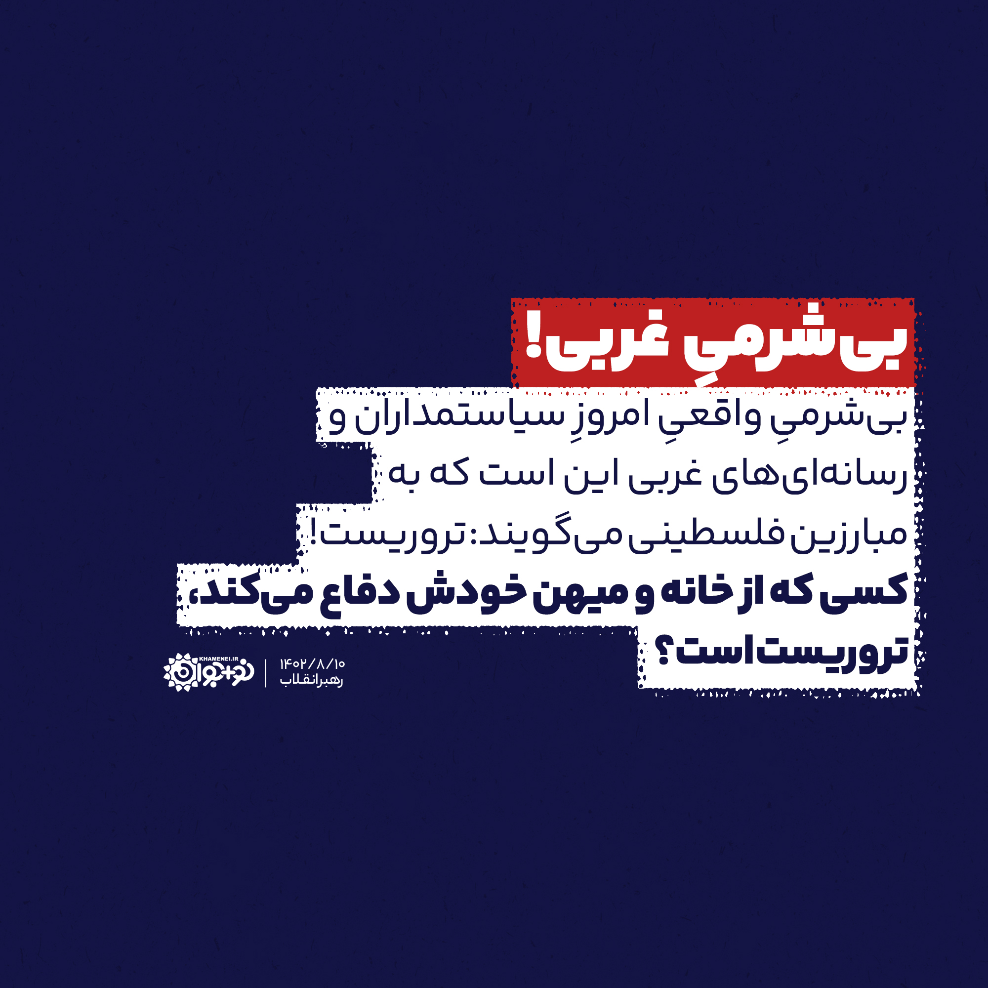 بیشرمی واقعی امروز سیاستمداران و رسانهایهای غربی این است که به مبارزین فلسطینی را میگویند «تروریست»! کسی که از خانه خودش دفاع میکند، تروریست است؟
