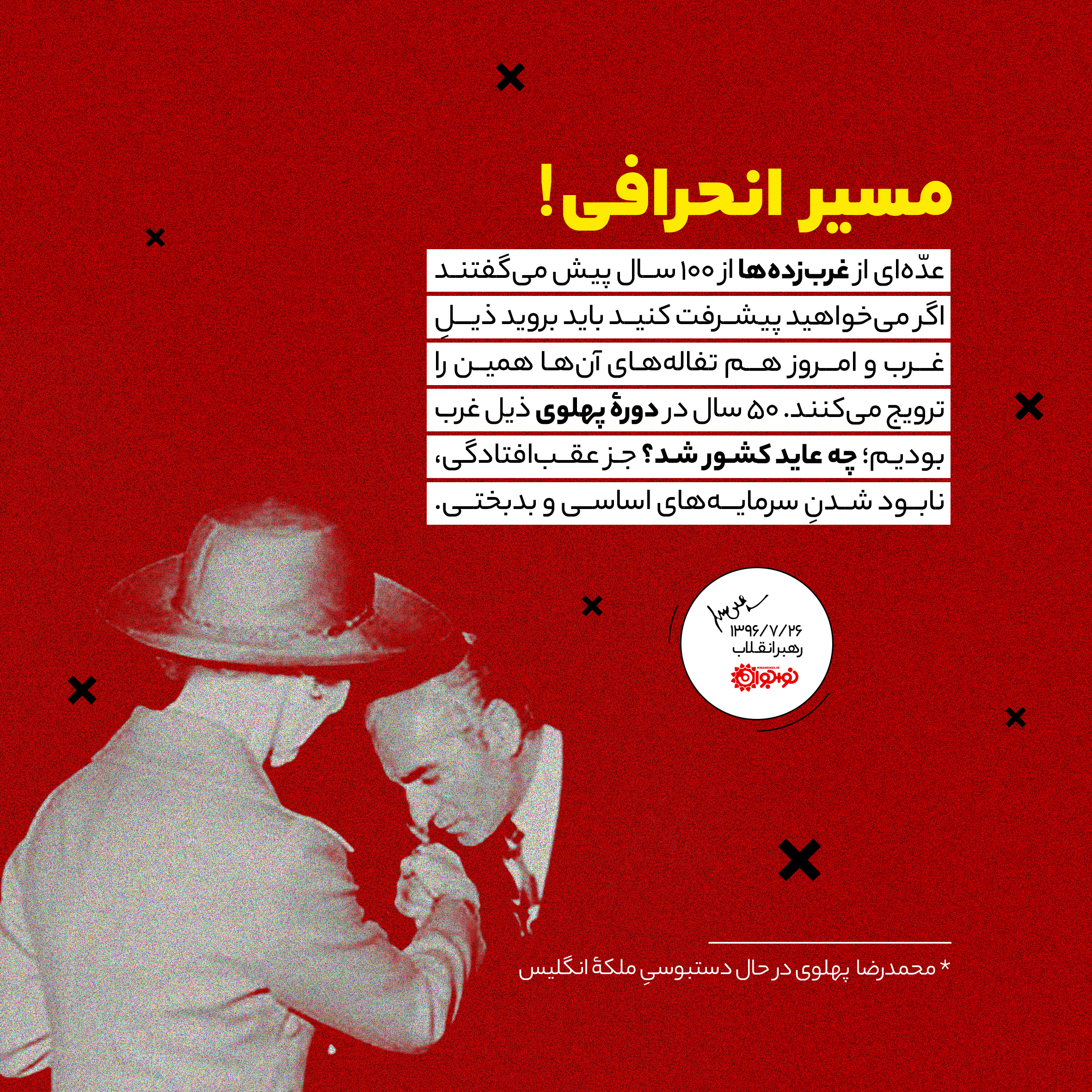 عدهای از غربزدهها، از صد سال پیش میگفتند اگر میخواهید پیشرفت کنید باید بروید ذیل غرب و امروز هم تفالههای آنها همین را ترویج میکنند. پنجاه سال در دوره پهلوی ذیل غرب بودیم چه عاید کشور شد؟ جز عقبافتادگی، سرمایههای اساسی کشور و بدبختی.
