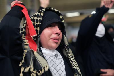 اقامه نماز بر پیکر شهید سپهبد قاسم سلیمانی و یاران مجاهد او