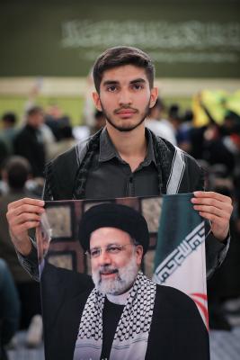اقامه نماز بر پیکر شهید سپهبد قاسم سلیمانی و یاران مجاهد او