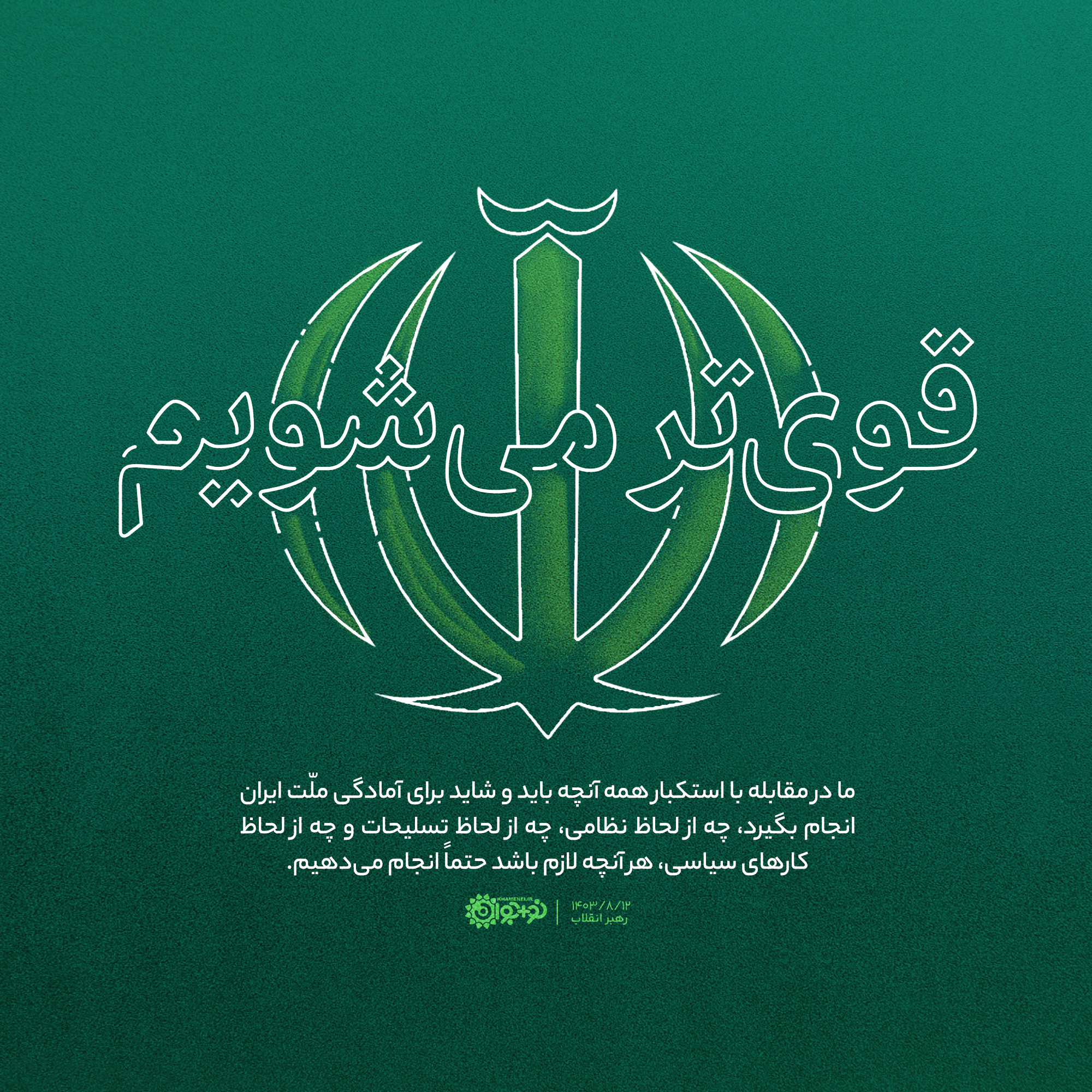 ما در مقابله با استکبار همه آنچه باید و شاید برای آمادگی ملت ایران انجام بگیرد، چه از لحاظ نظامی، چه از لحاظ تسلیحات و چه از لحاظ کارهای سیاسی، هر آنچه لازم باشد حتماً انجام میدهیم.