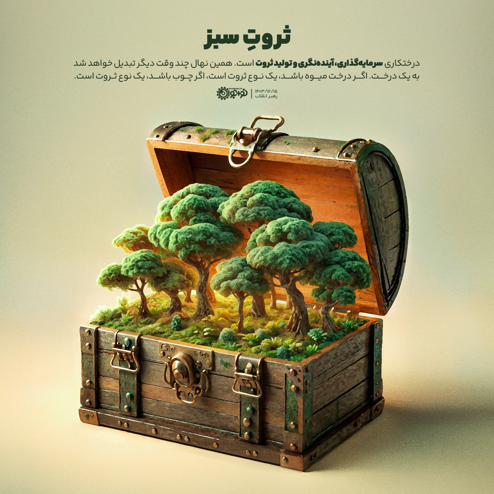 درختکاری سرمایهگذاری، آیندهنگری و تولید ثروت است. همین نهال چند وقت دیگر تبدیل خواهد شد به یک درخت. اگر درخت میوه باشد، یک نوع ثروت است، اگر چوب باشد، یک نوع ثروت است.