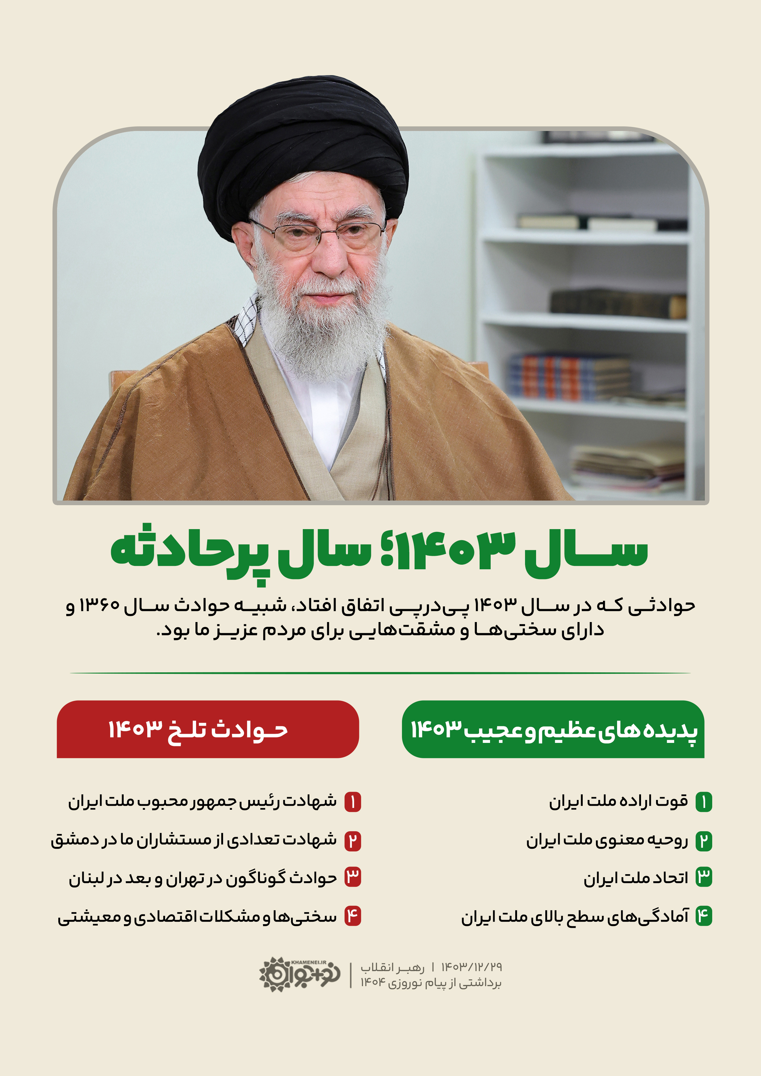 ۱۴۰۳/۱۲/۲۹ - پیام نوروزی رهبر انقلاب