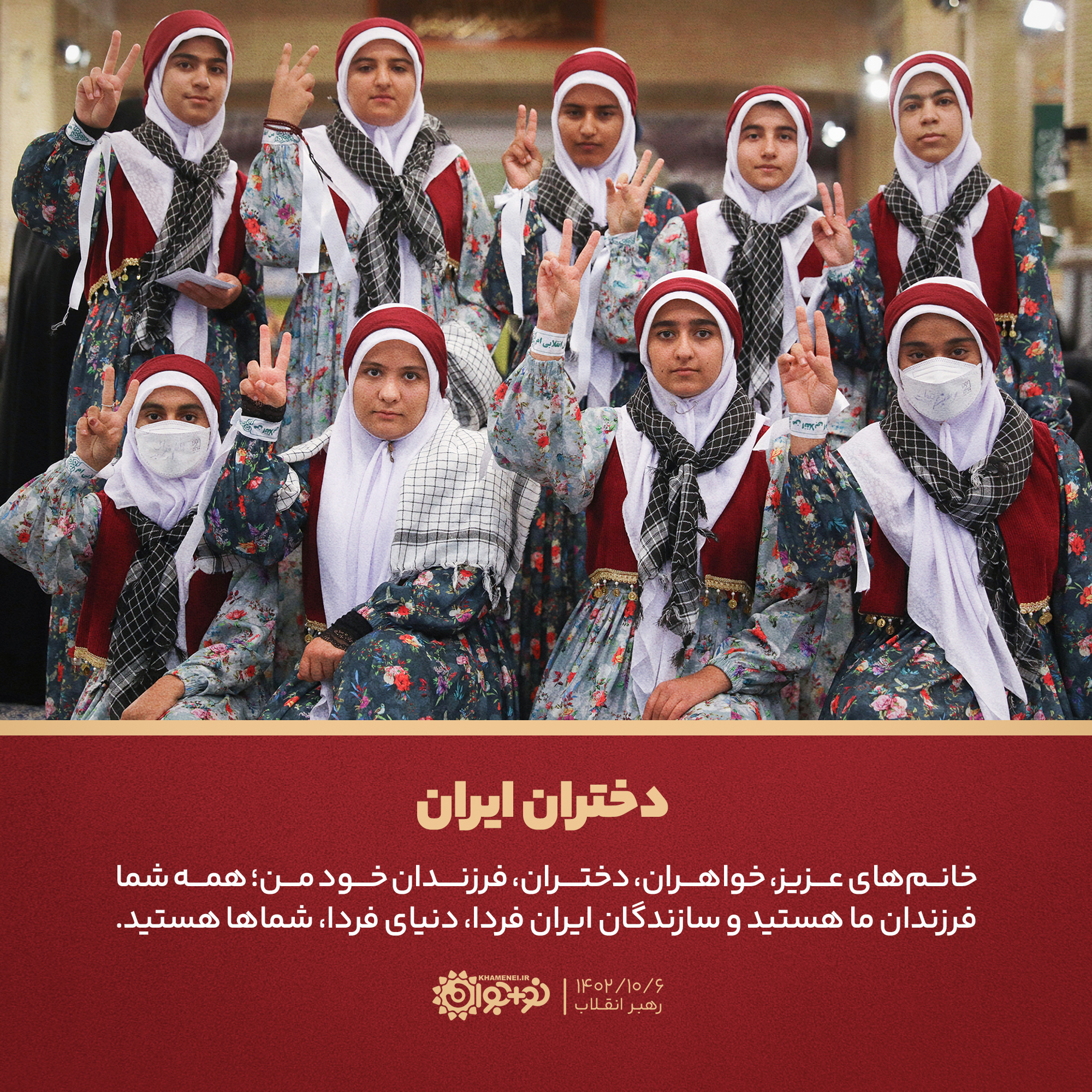 خانمهای عزیز، خواهران، دختران، فرزندان خود من؛ همه شما فرزندان ما هستید و سازندگان ایران فردا، دنیای فردا، شماها هستید.