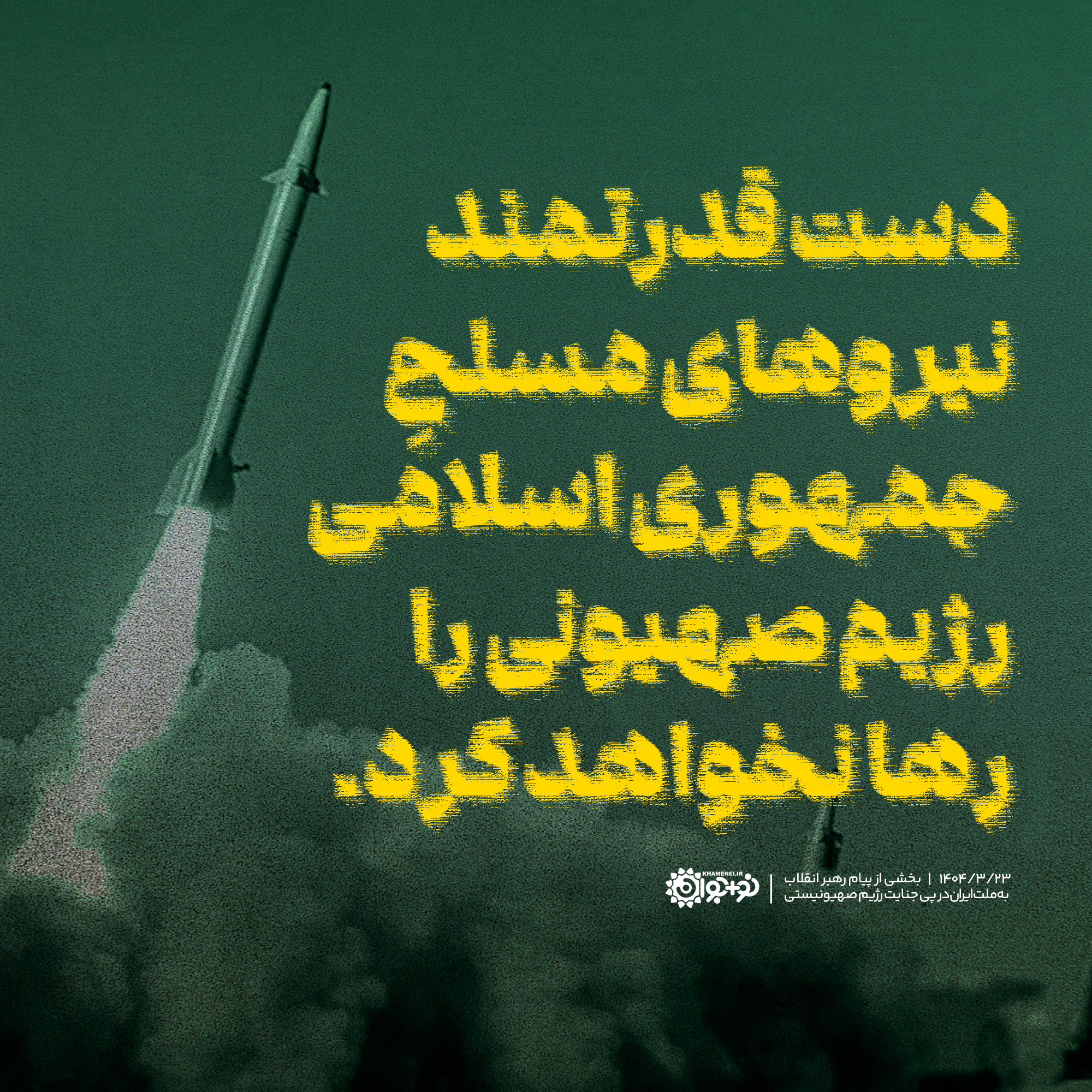 دست قدرتمند نیروهای مسلح جمهوری اسلامی رژیم صهیونی را رها نخواهد کرد.